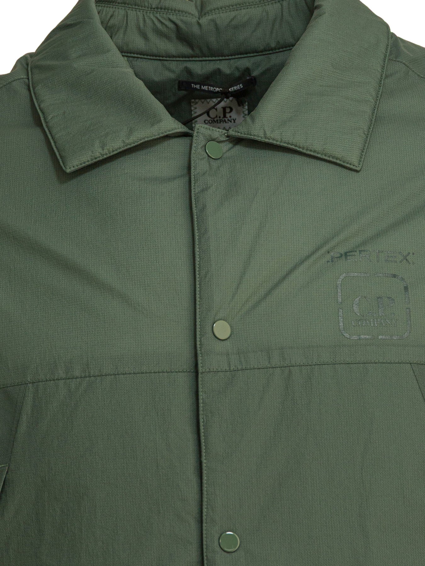 C.P. Company "Metropolis Series" overshirt jacket made of Pertex®, an ultralight 2.5-layer ripstop fabric with a waterproof membrane and breathable micro-goffered back. The construction features a minimal structure with a classic collar, front snap closure and regular fit. Zippered side pockets result integrated into the seams, elastic cuffs and adjustable drawstring hem provide essential functionality on the garment. || - Logo badge printed on chest and back - Ultra-lightweight Pertex® ripstop fabric - Waterproof membrane and breathable micro-goffered back - Front snap button closure - Hidden zippered side pockets - Elasticized cuffs - Adjustable drawstring hem - Regular fit