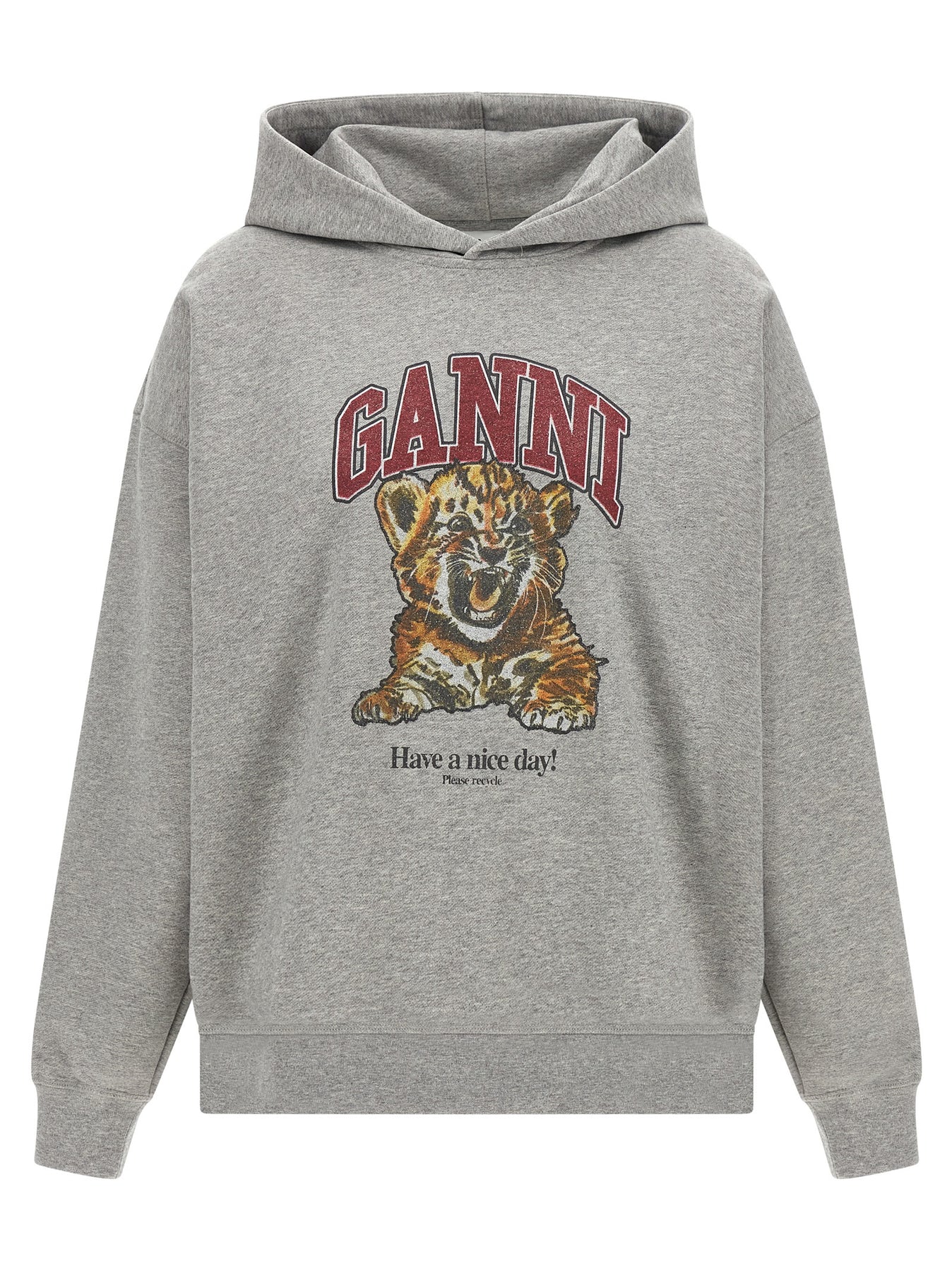 Gauze mélange cotton hoodie with graphic print with front 'Grey Tiger' pattern, long cuffed sleeves and dropped shoulders. SUSTAINABLE: This product is made with organic cotton.
