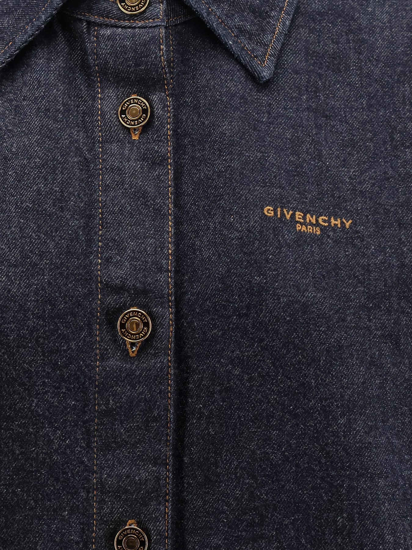 Closure with logoed metal buttons Classic pointed collar and logo embroidery on the front Long sleeves with buttoned cuffs Asymmetric hem 100% cotton SKU: BW61F1516P401
