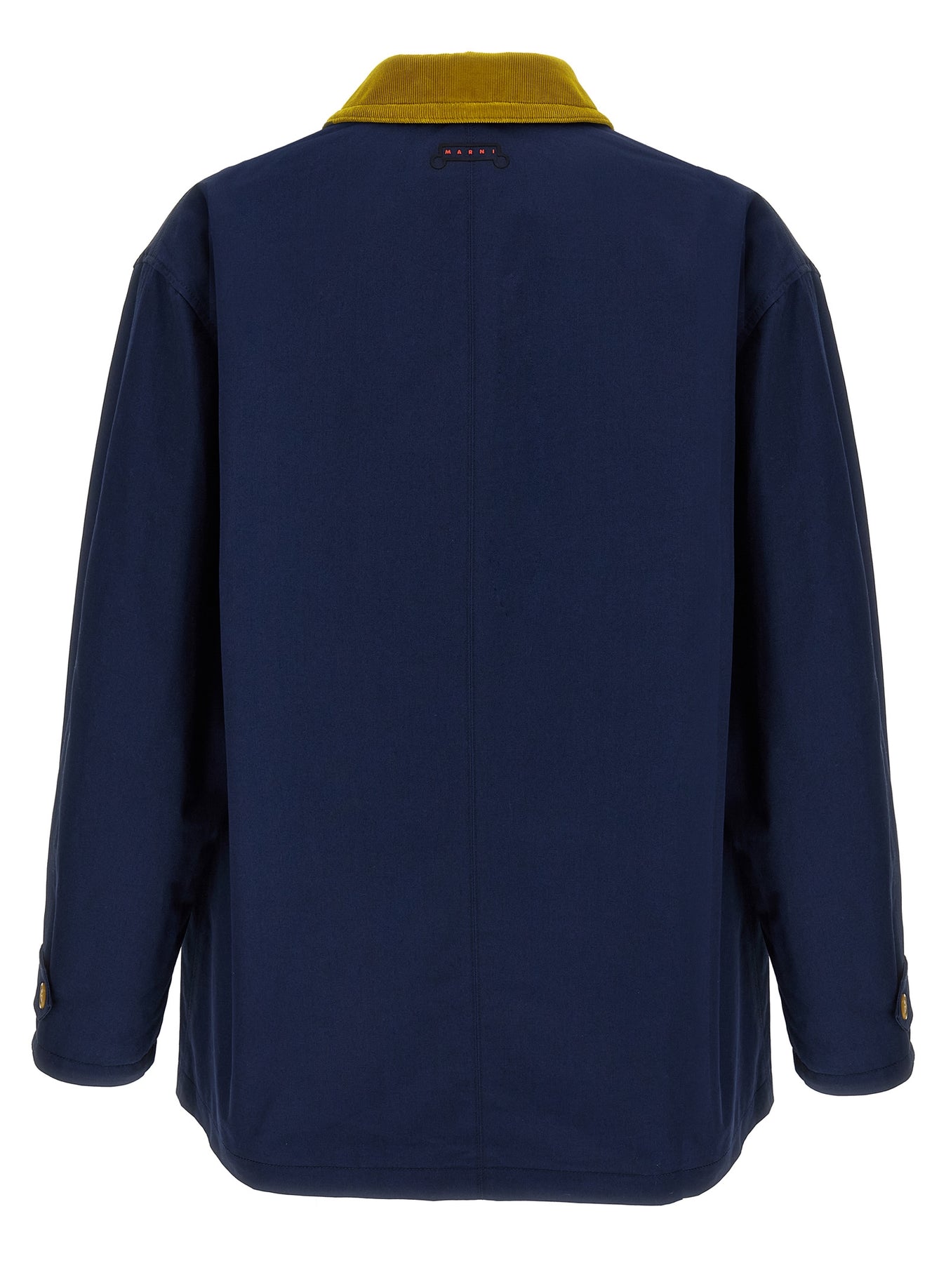 Lightly padded cotton gabardine parka, quilted lining, back silicone logo, contrast corduroy collar, front button closure, pockets, long sleeves with cuffs and dropped shoulder. SUSTAINABLE: This product is made of organic cotton.
