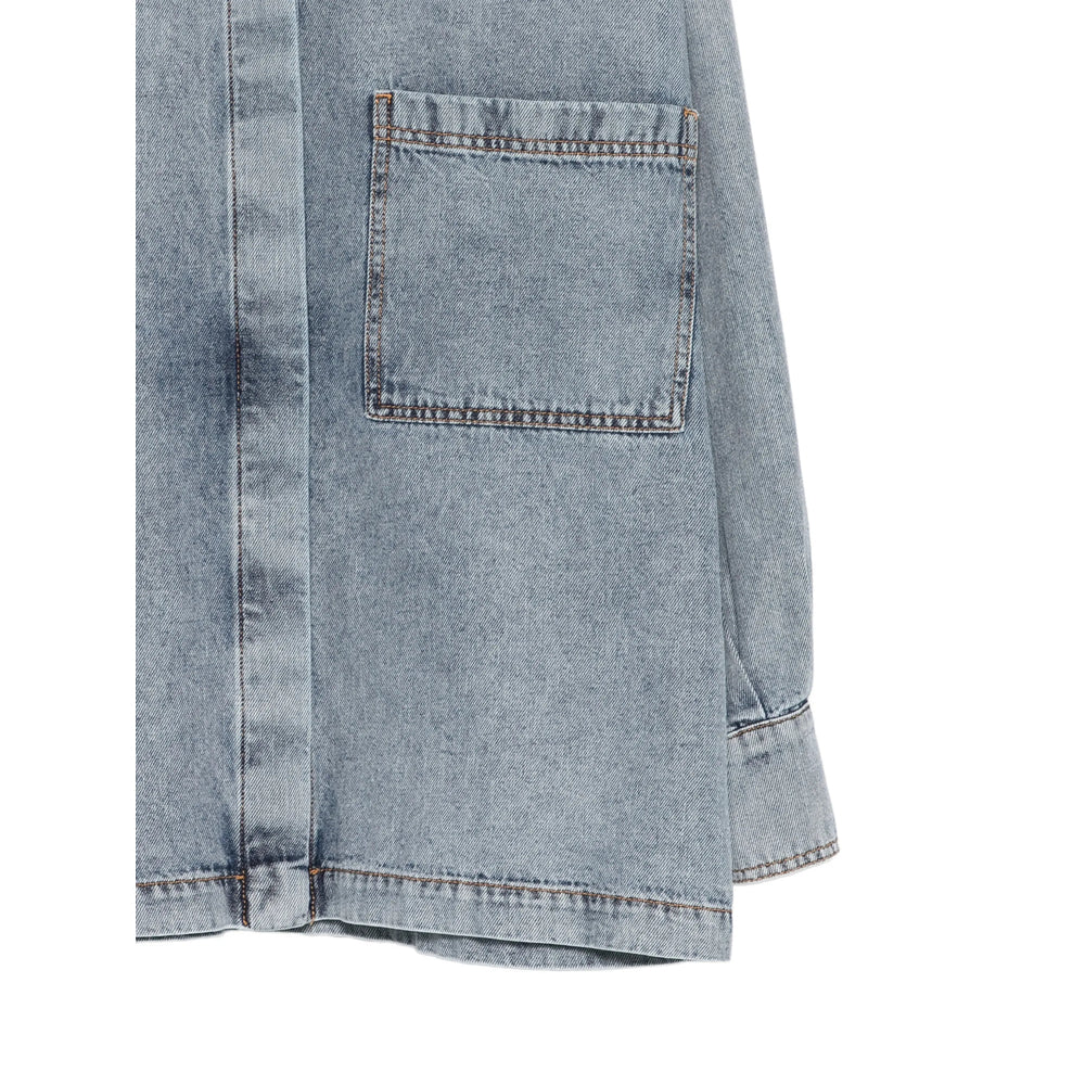 blue button fastening long sleeves buttoned cuffs topstitch detailing