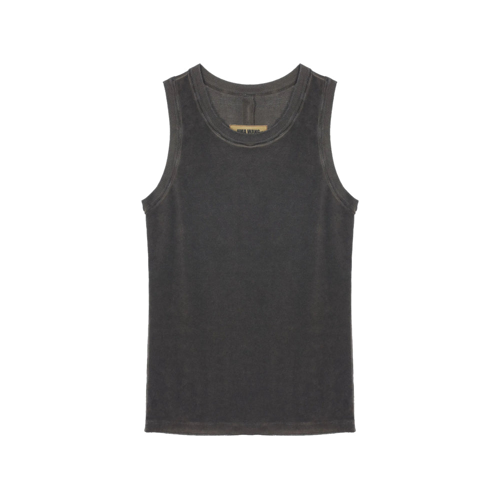 brown ribbed texture round neck sleeveless