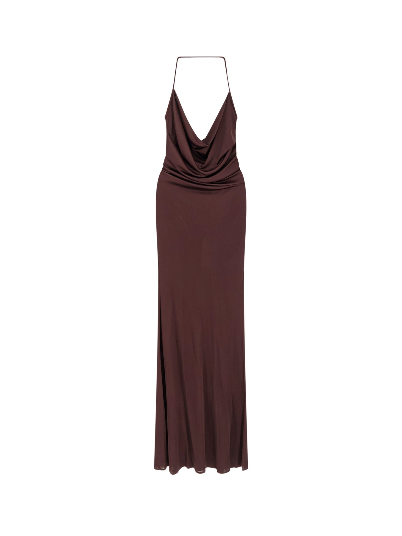 SKU: ABR0652E2_644 - Tubular straps with golden metal logo details draped neckline wide neckline on the back made in italy 100% viscose