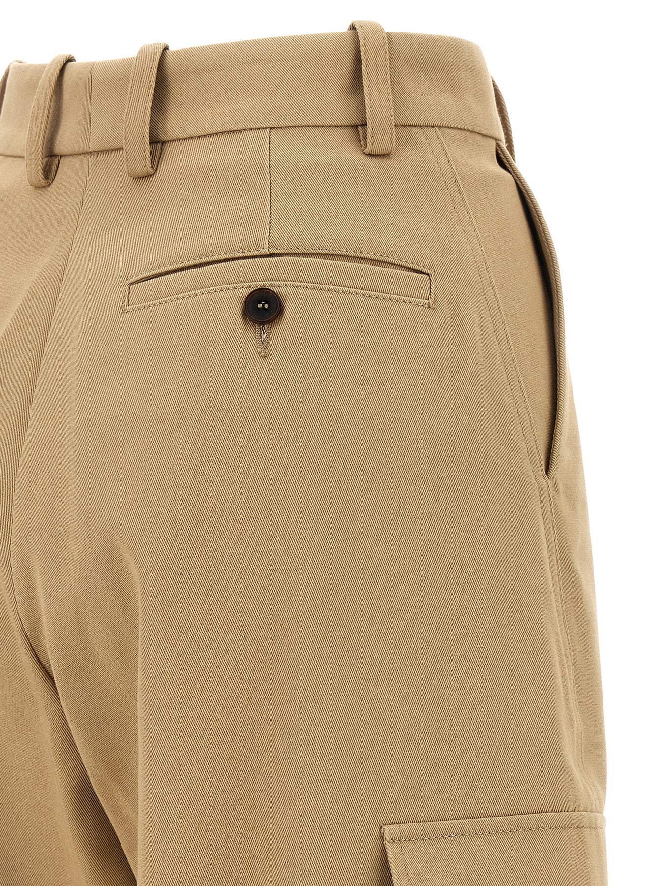 'Cocoon' cargo pants in cotton and wool blend with pockets, hook and button zip closure, ironed pleat, pockets.