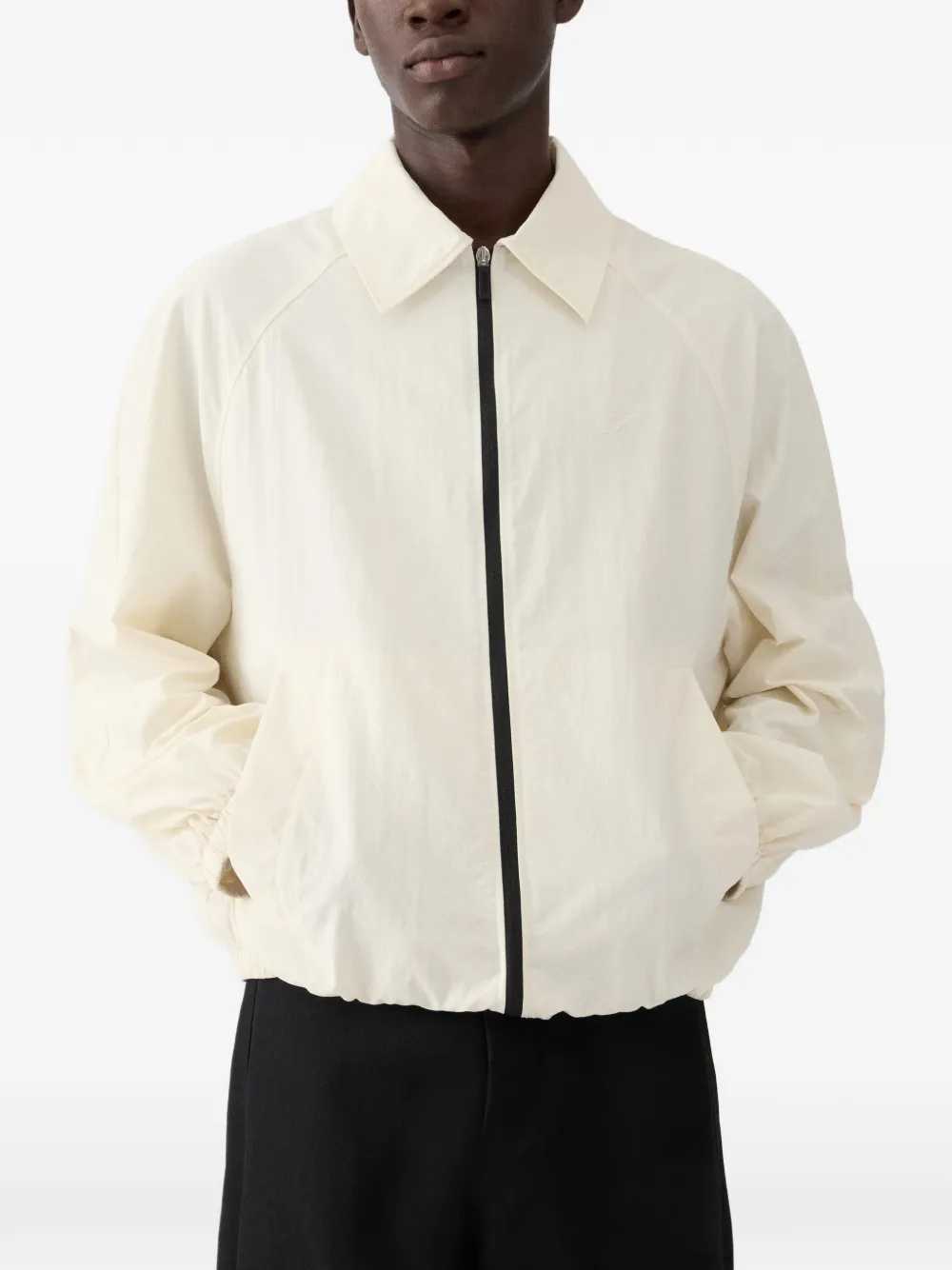 Zip-up windbreaker Highlights White Zipper Drawstring hem Long sleeves Pointed collar Composition 96% polyamide, 4% polyurethane Care Instructions Read manufacturer`s guidelines ID 26EOUM00139AW00645