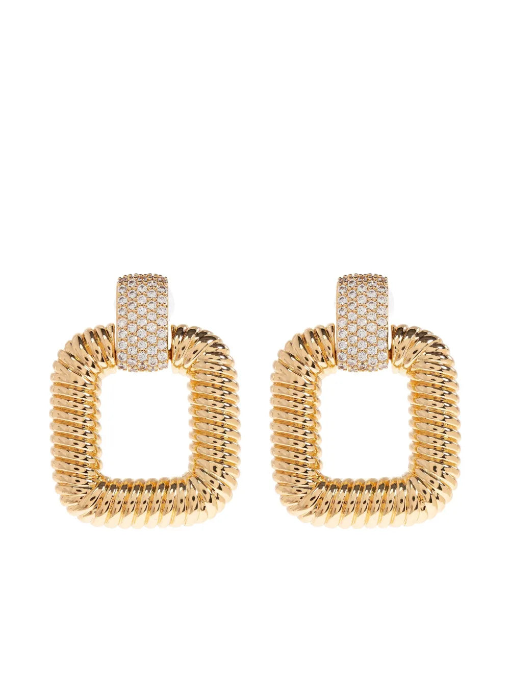 Square earrings Features Gold Square shape Twisted design Crystal embellishment Snap closure Composition Glass, brass ID AW25603EGD