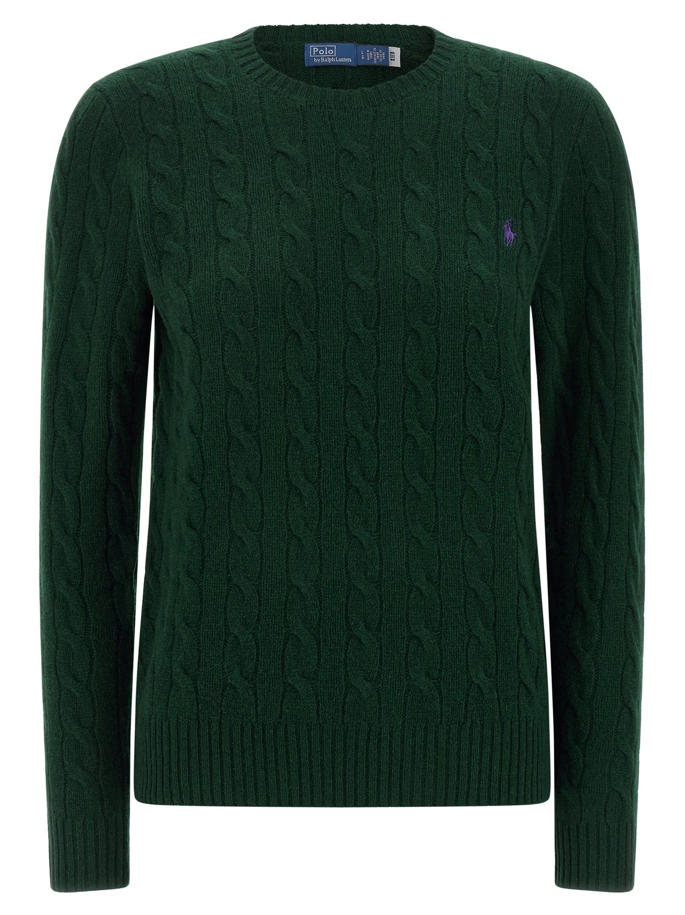 'Wananna' wool and cashmere blend sweater with braided pattern, front logo embroidery, crew neck, long cuffed sleeves.
