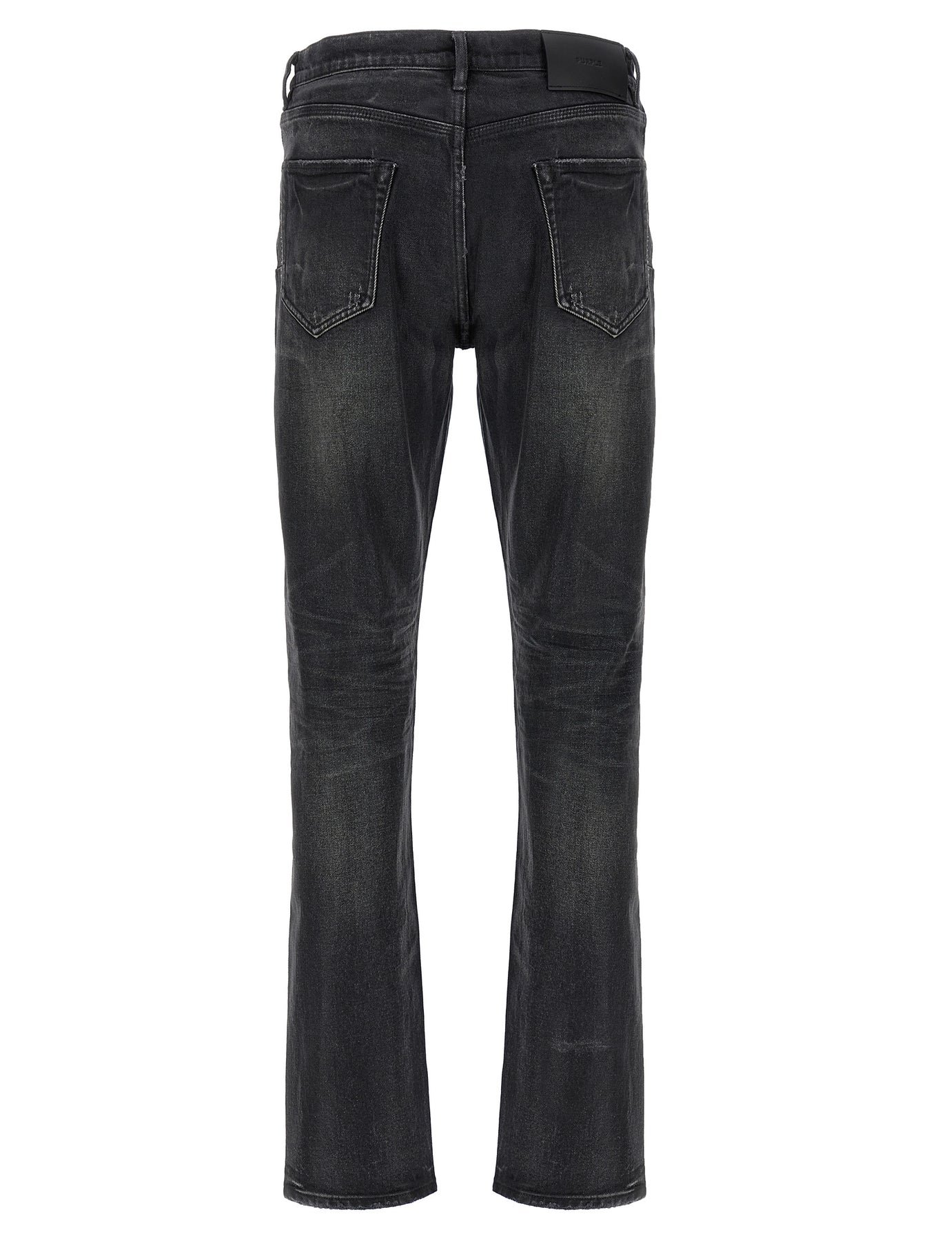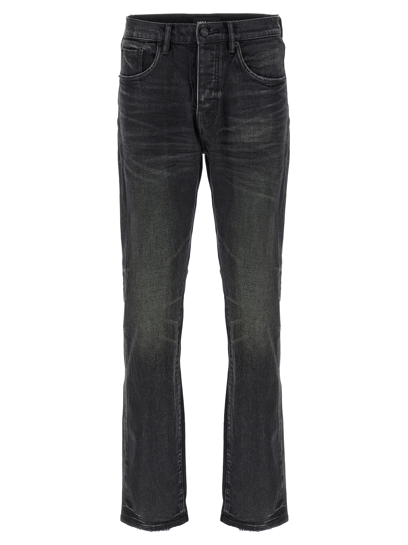 'P005 Double Dip Coated' coated delavé cotton denim jeans, mid-waist model with straight leg, deliberately wrinkled effect in parts, button closure, five pockets, and leather logo label at the back. This product is made with craft techniques, possible variations between one item and another are to be considered characteristics of the product.