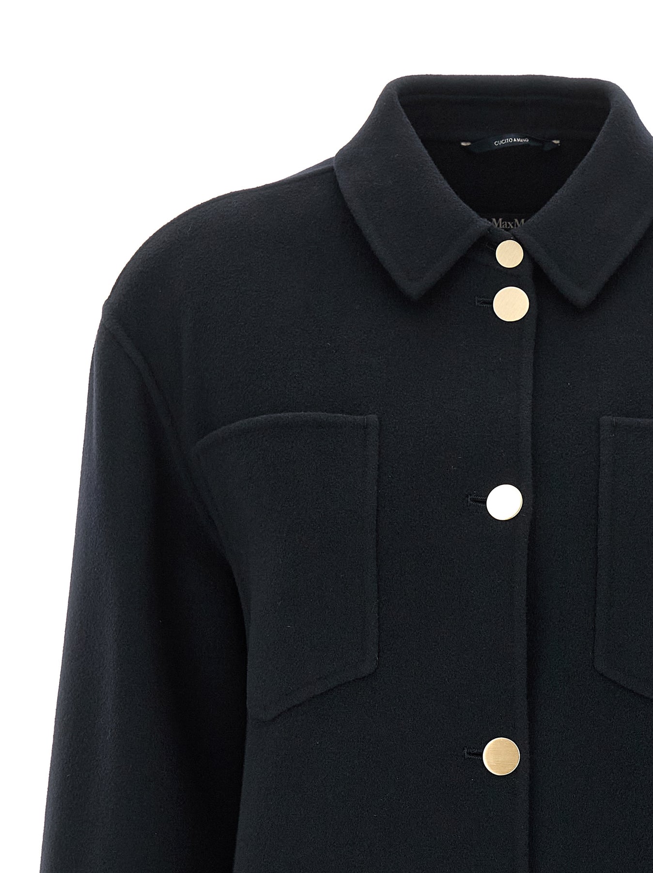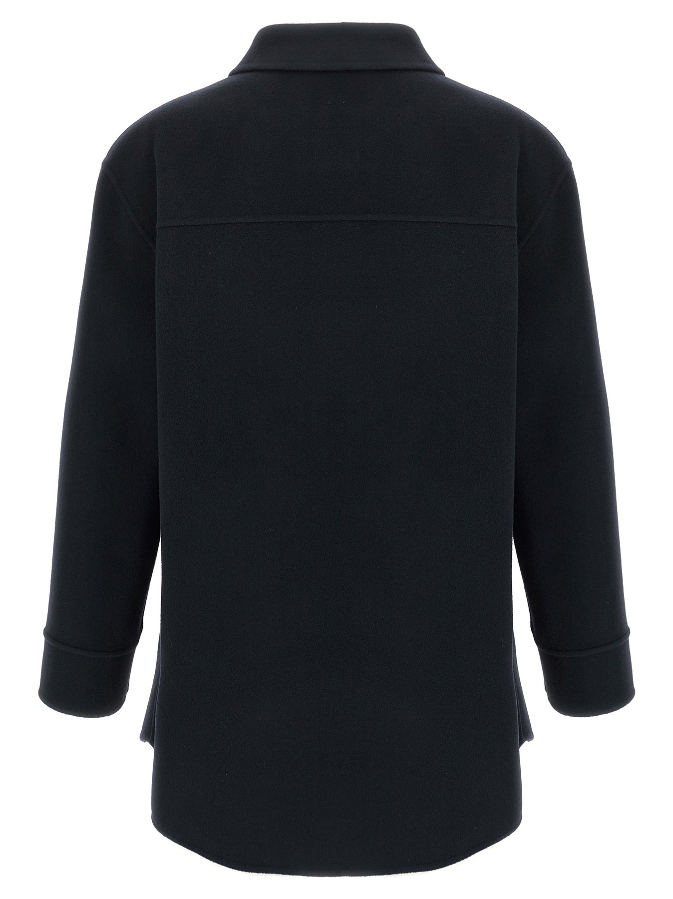 'Eleonora' shirt in double pure wool drap sewn by hand, front metal button closure, pockets, long sleeves with dropped shoulders.