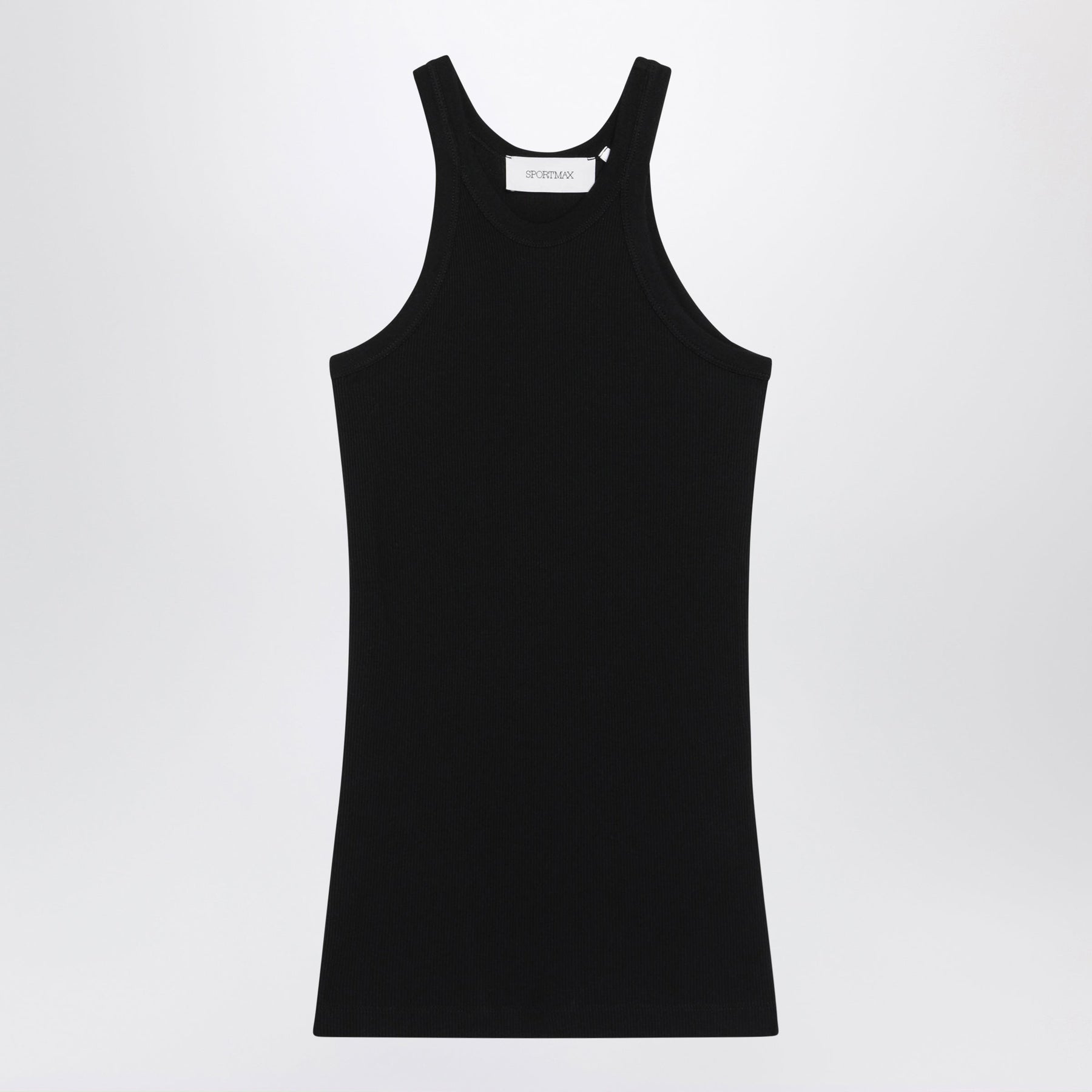 Ribbed Cotton And Silk Halterneck Tank Top In Black