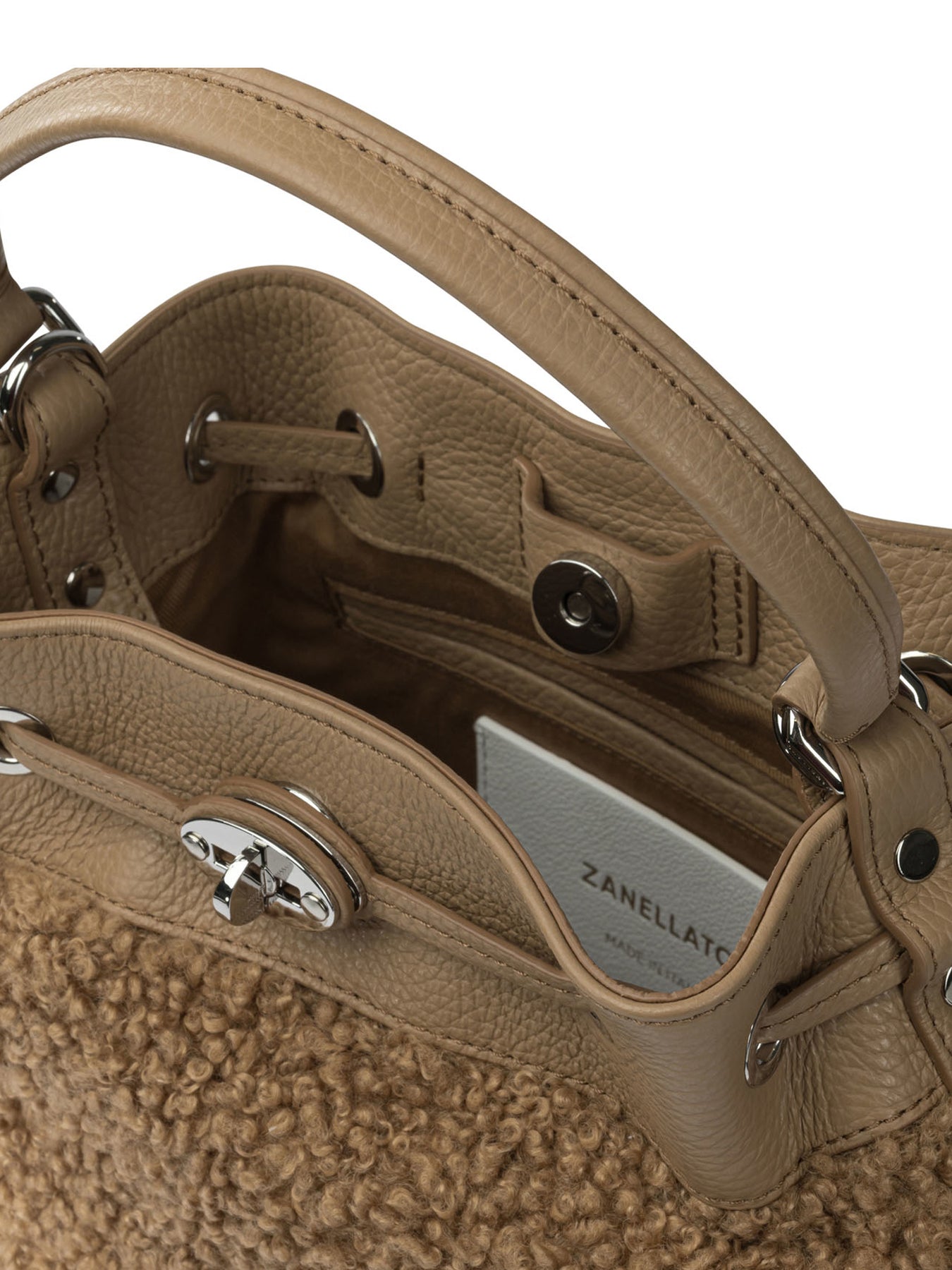 Zanellato "Monda Dolly" handbag made with a wool-effect weave surface and leather trim. The construction features a structured silhouette with a rigid profile and an integrated top handle. Featuring a metal swivel closure on the front panel, the bag includes an adjustable and removable shoulder strap. The interior compartment is unique, outlining rational space management for personal items. || - Wool-effect weave - Leather trim - Top handle - Adjustable and removable shoulder strap - Metal swivel closure - Single interior compartment