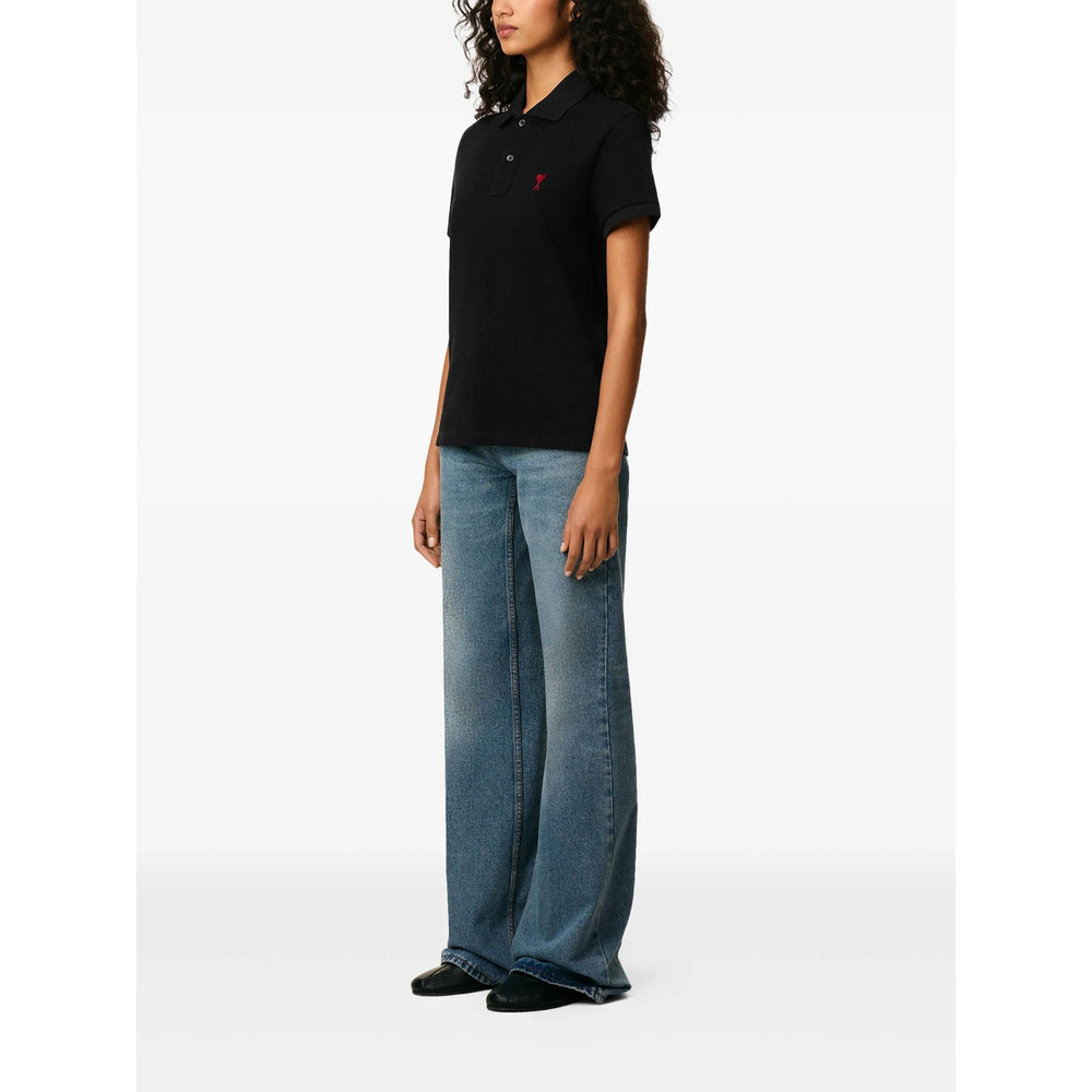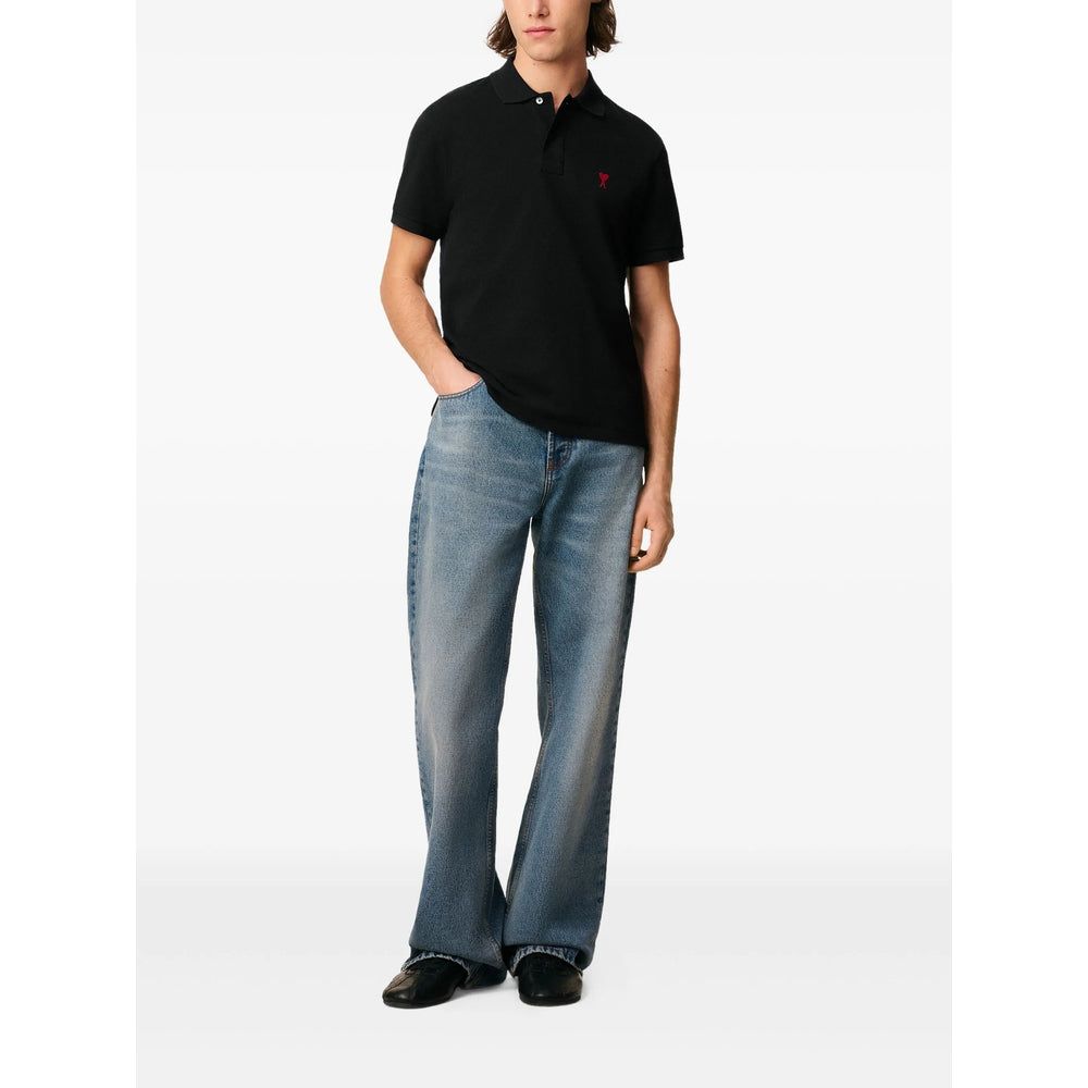 black organic cotton piqué weave embroidered logo at the chest polo collar front button placket short sleeves straight hem When buying this unisex item, keep in mind that it is graded in standard men's sizing.