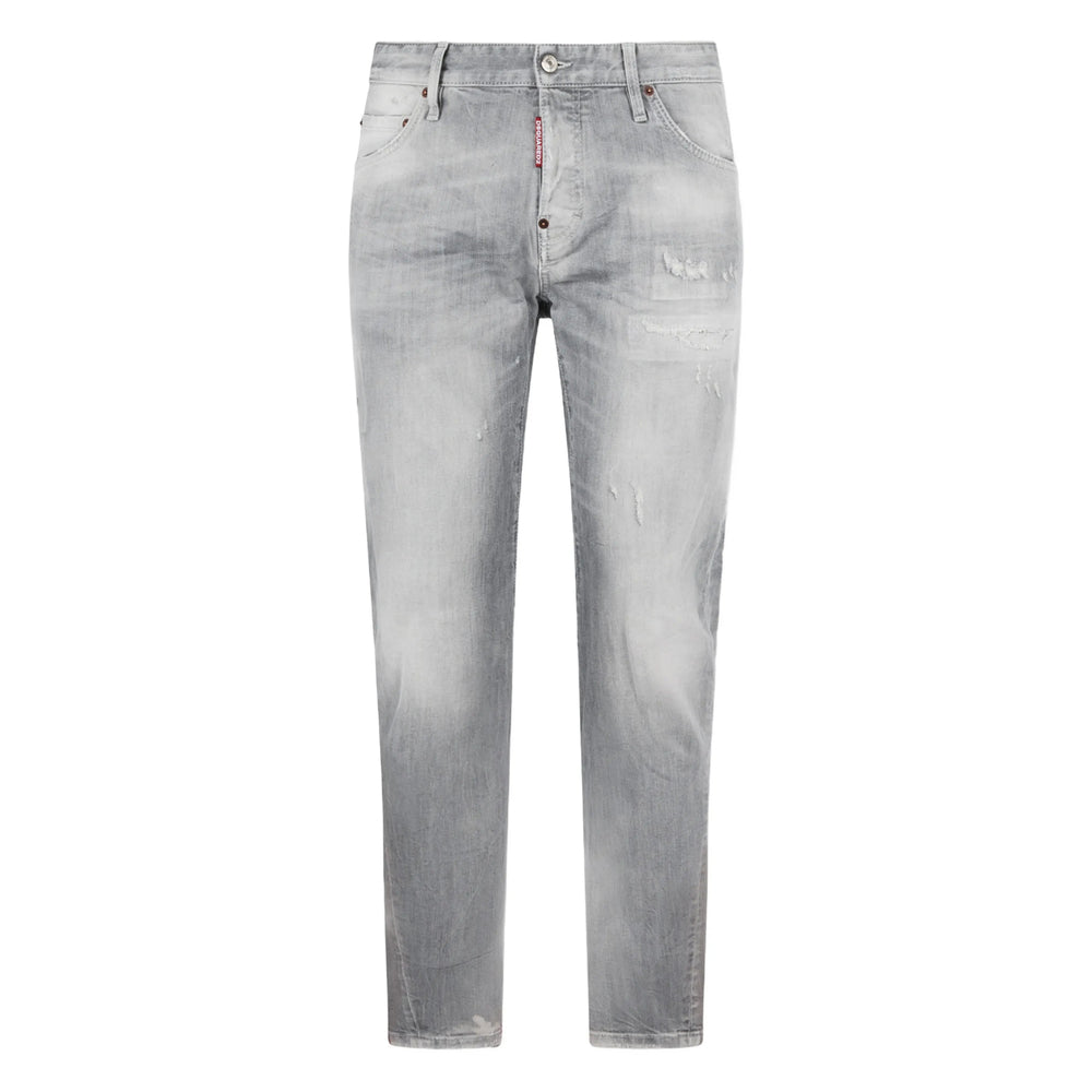 grey distressed effect five pockets belt loops button fastening