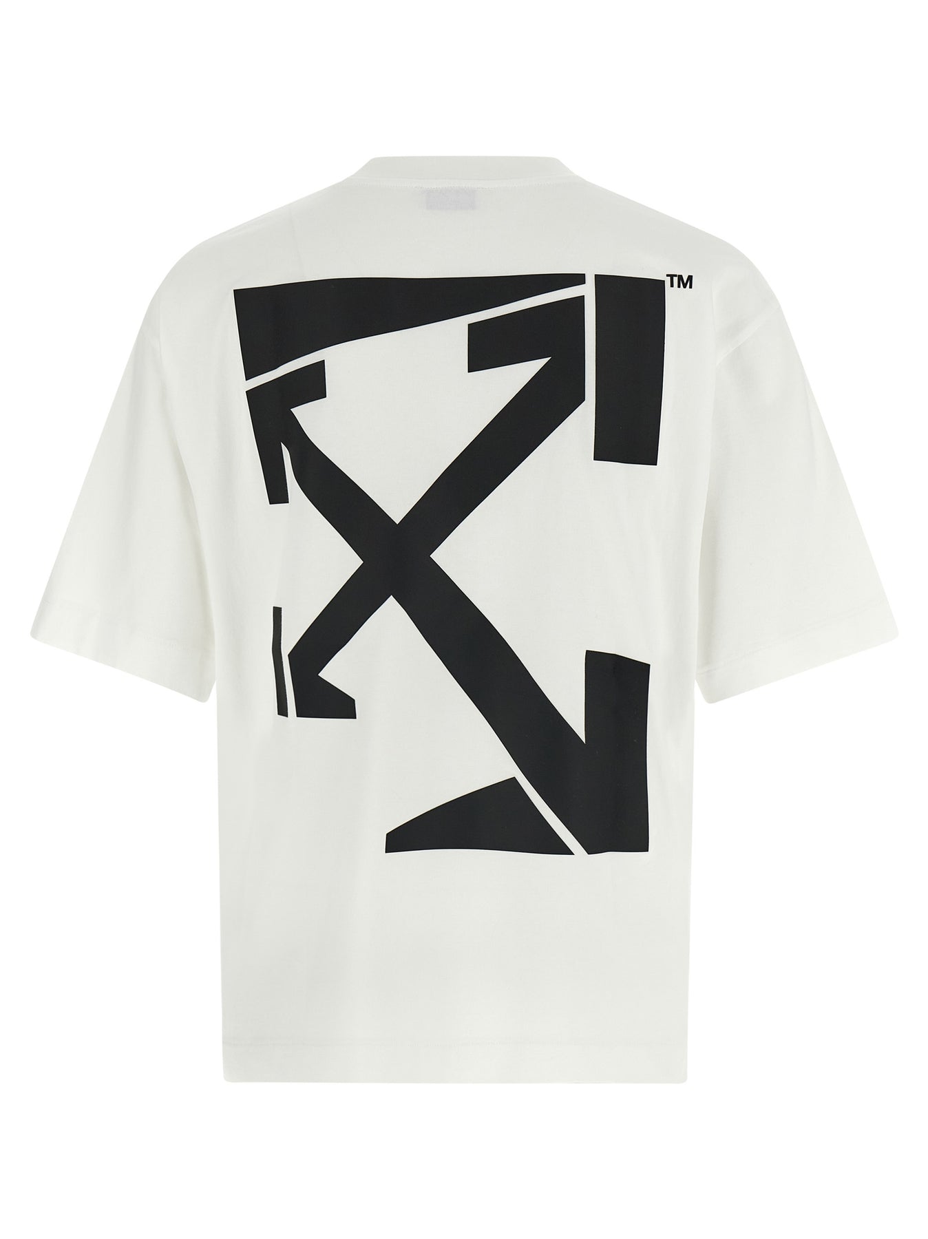 'Run Arrow' cotton crew neck t-shirt with front and back print, short sleeves.