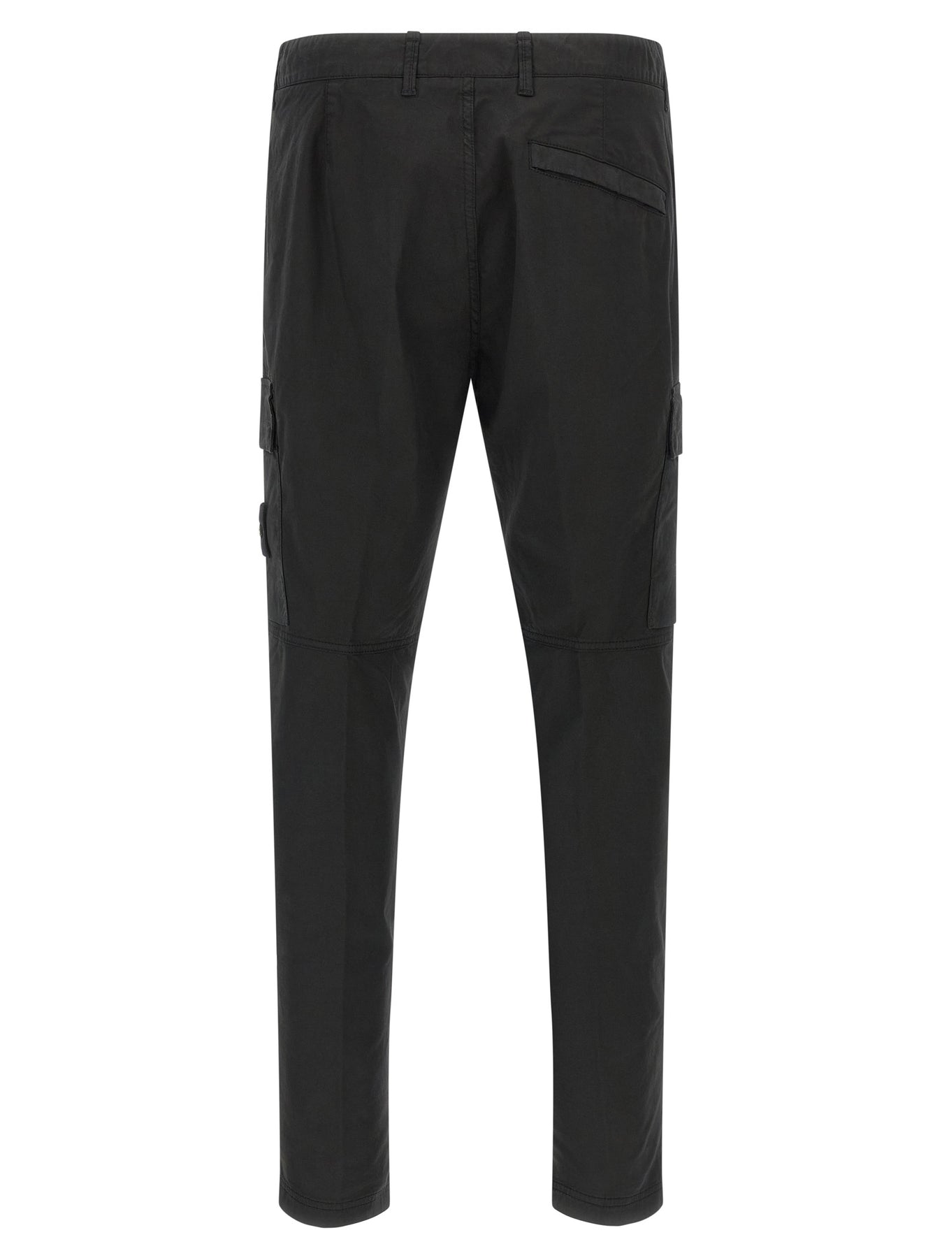 Cotton pants, model with cargo pockets with logo badge application, low waist, zip and front button closure, pockets.