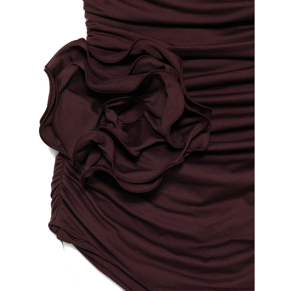 dark red floral detail ruched Be mindful to try on swimwear over your own garments.