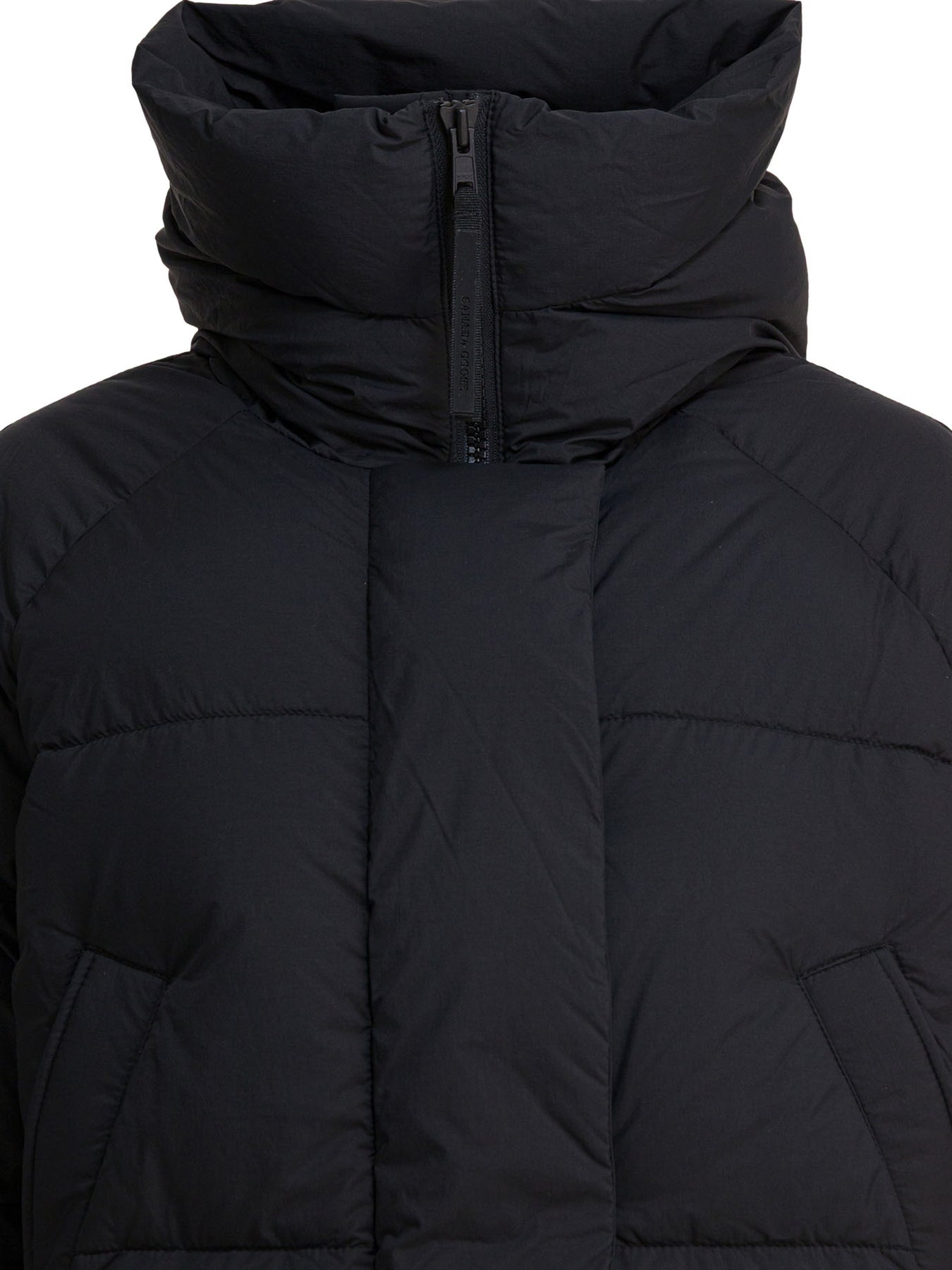 Canada Goose "Chilliwack" down jacket, construction in recycled EnduraLuxe with a water-repellent matte finish and delicate texture. Voluminous structure and slightly short cut are combined with drawstring-adjustable bottom hem. Down-filled, adjustable snorkel hood, front flap closure with hidden snaps on two-way zipper. Internal ribbed knit cuffs, internal shoulder carry straps. || - Solid color - Long sleeves - Two fleece-lined zippered front pockets - One additional zippered pocket on the sleeve - One interior drop-in pocket - Adjustable down-filled snorkel hood - Bottom hem with adjustable drawcord - Retracting ribbed knit cuffs - Internal straps for backpack function - Environmentally sustainable product - Regular fit