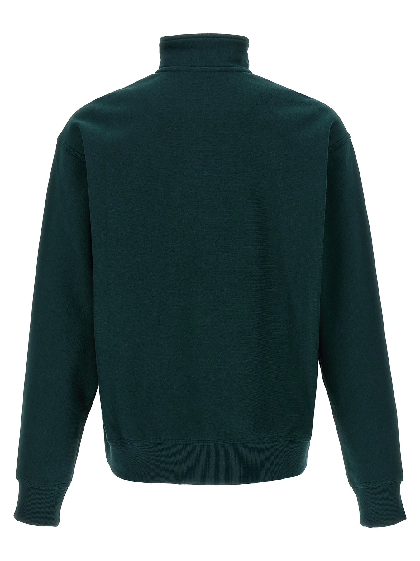 'American Script' cotton blend sweatshirt with half zip high neck, logo embroidery, long cuffed sleeves.