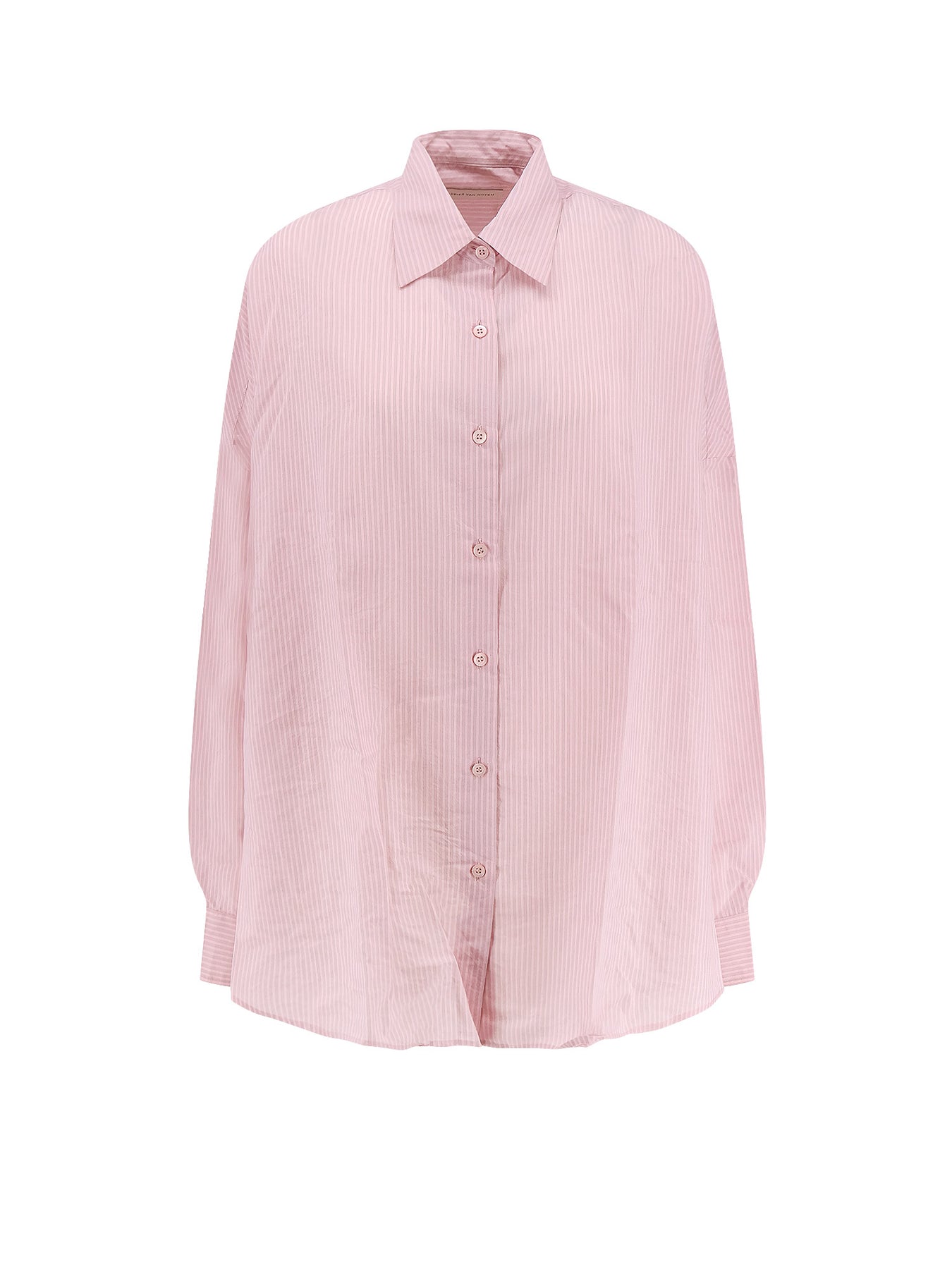 SKU: 2510107001524_313 - Closure with buttons and pointed collar long sleeves with cuff and button rounded bottom oversize fit 55% cotton 45% cupro