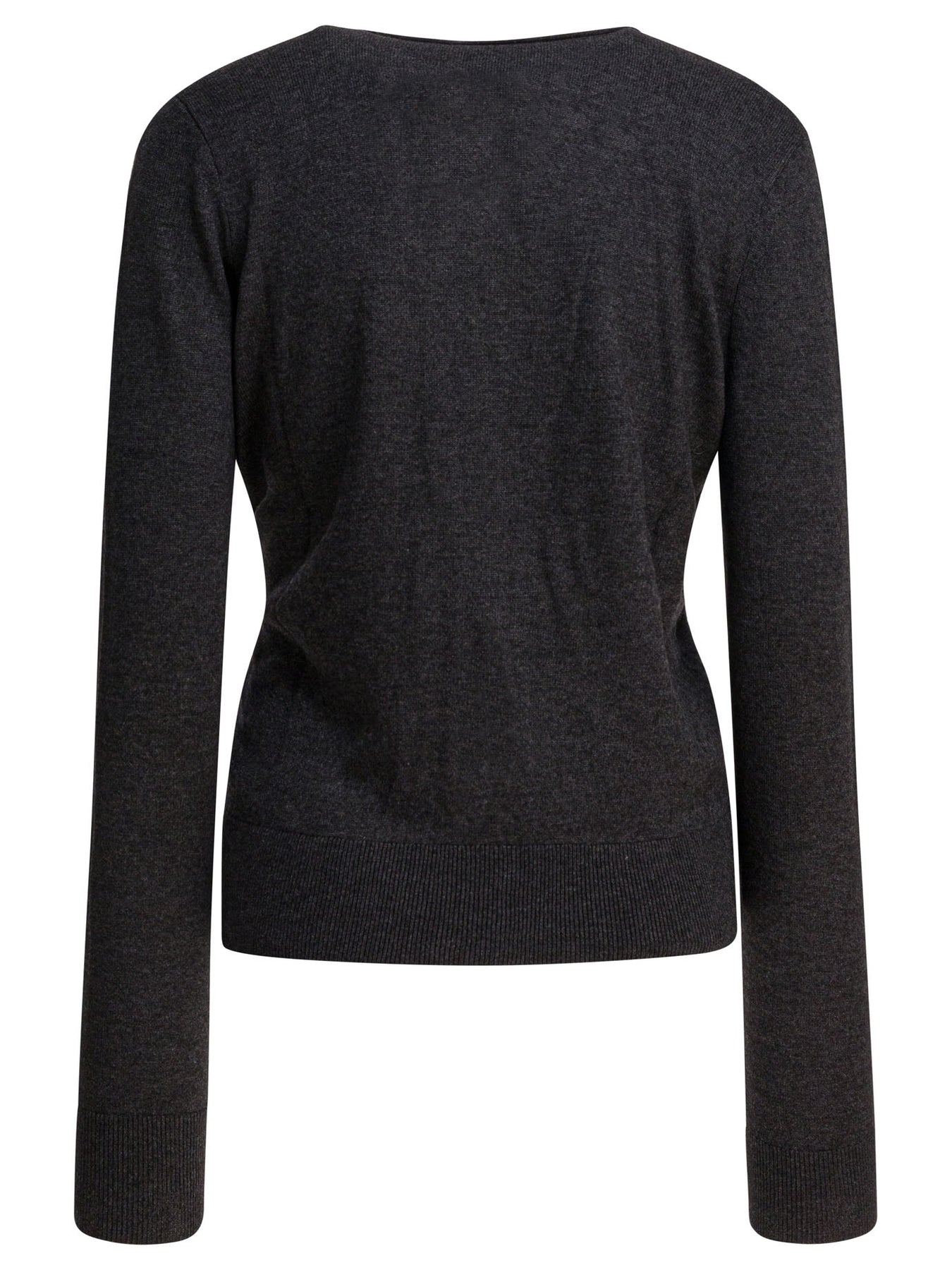Cardigan "Cory-GD" Isabel Marant, made from a blend of viscose and wool, features a fine knit structure with a linear silhouette. The closure is defined by a row of buttons applied asymmetrically at the front, while the neckline follows a V-shaped line. The seams are flat and unobtrusive, without ornamental elements, with edges finished in shaved knit. || - Front button closure - Asymmetrical lacing - V-neckline