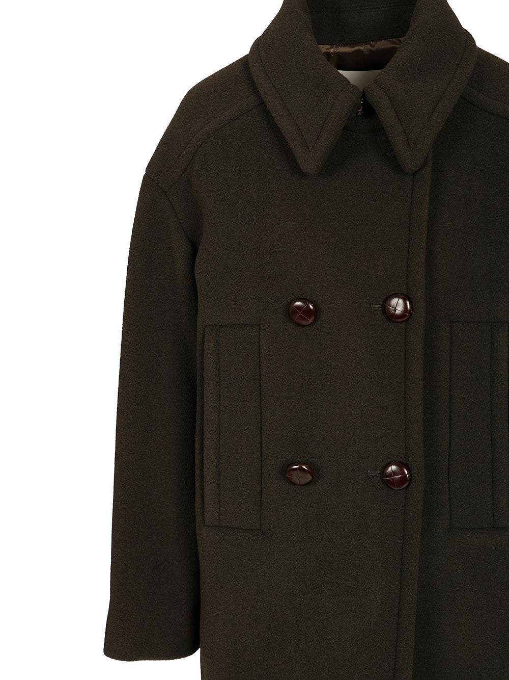 Double-breasted wool blend coat with flush pockets and shirt collar dark green
