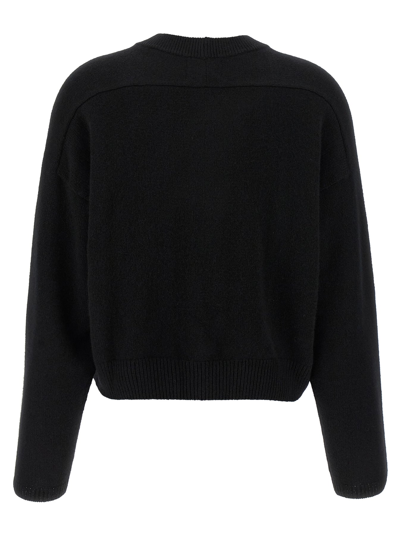 'Bill' cashmere sweater with draping with front metal pin, crew neck, long sleeves with dropped shoulders.
