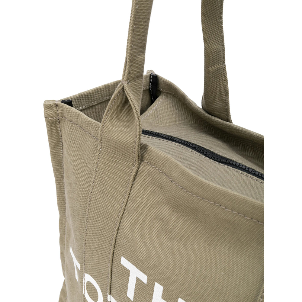 slate green cotton logo print to the front logo patch to the rear two rounded top handles adjustable detachable shoulder strap top zip fastening