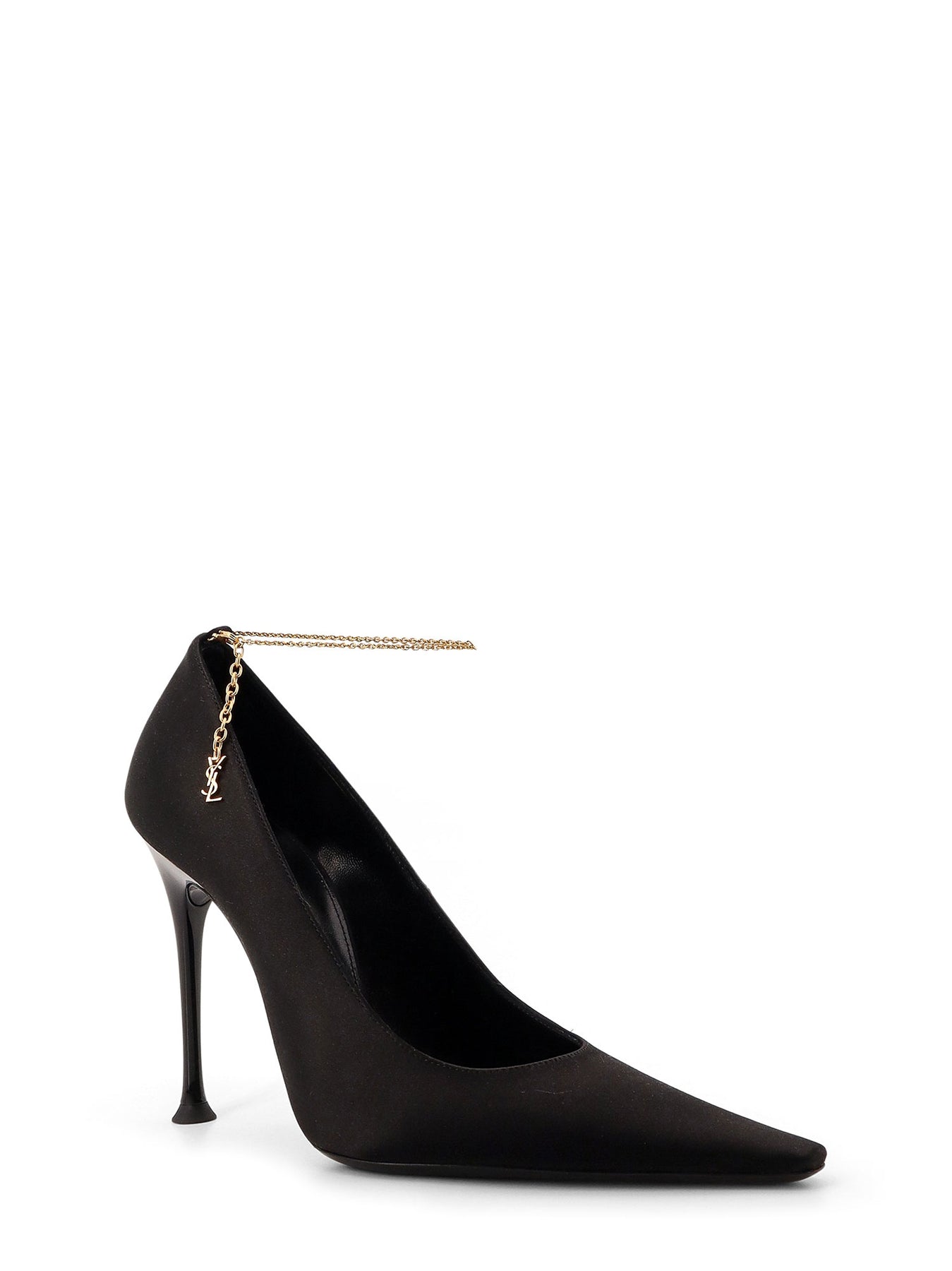 SKU: 8060219QAB1_1000 - Adjustable strap on the ankle with cassandre charm stiletto heel insole with metallic logoed label made in italy leather viscose/silk leather