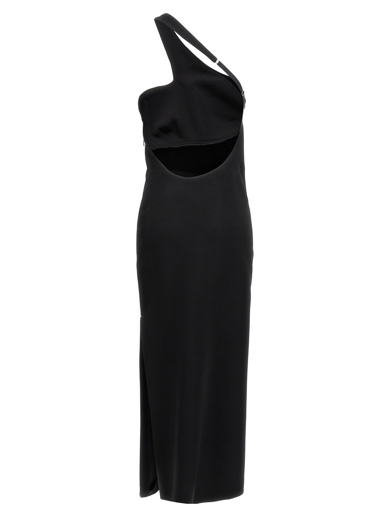 Molise' stretch viscose dress with one shoulder style, with adjustable shoulder straps, side zip closure and a split on the side hem.