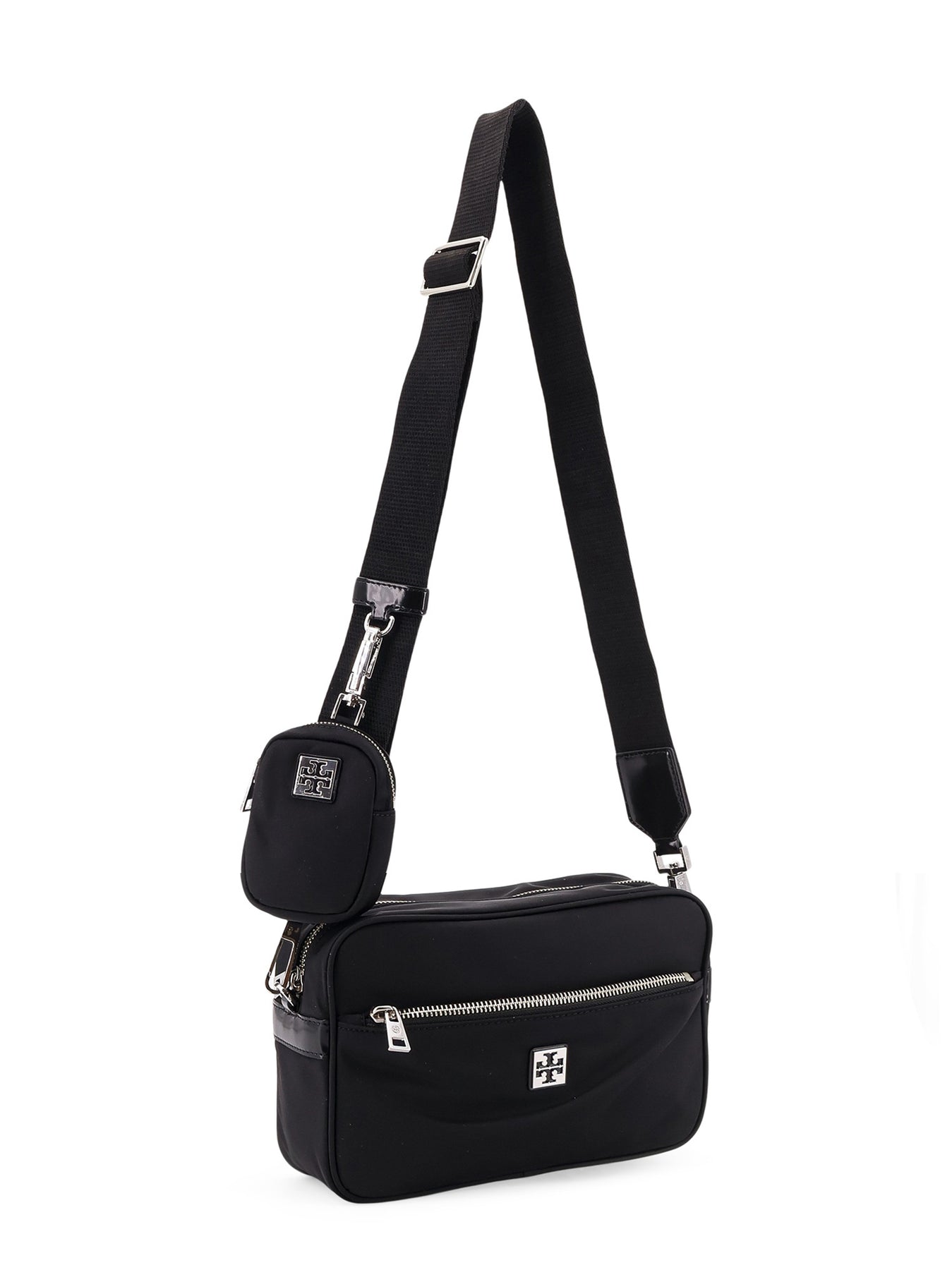 Zip closure Removable and adjustable shoulder strap External zip pocket Nylon mini pouch detail Metal monogram Polyamide W: 24cm x H: 15cm x D: 7cm SKU: 169166001