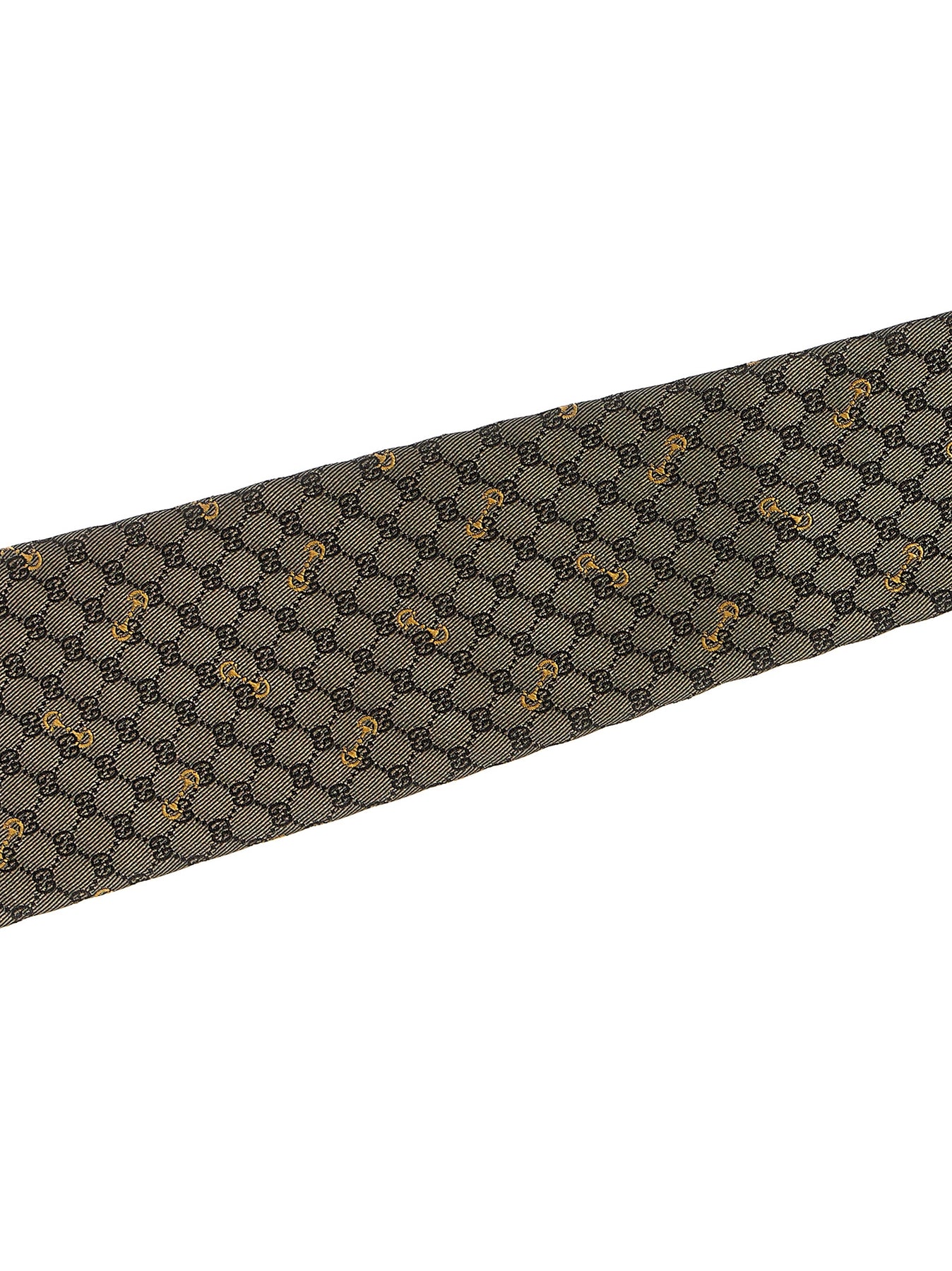Silk tie with 'GG' pattern and snaffle embroidery.