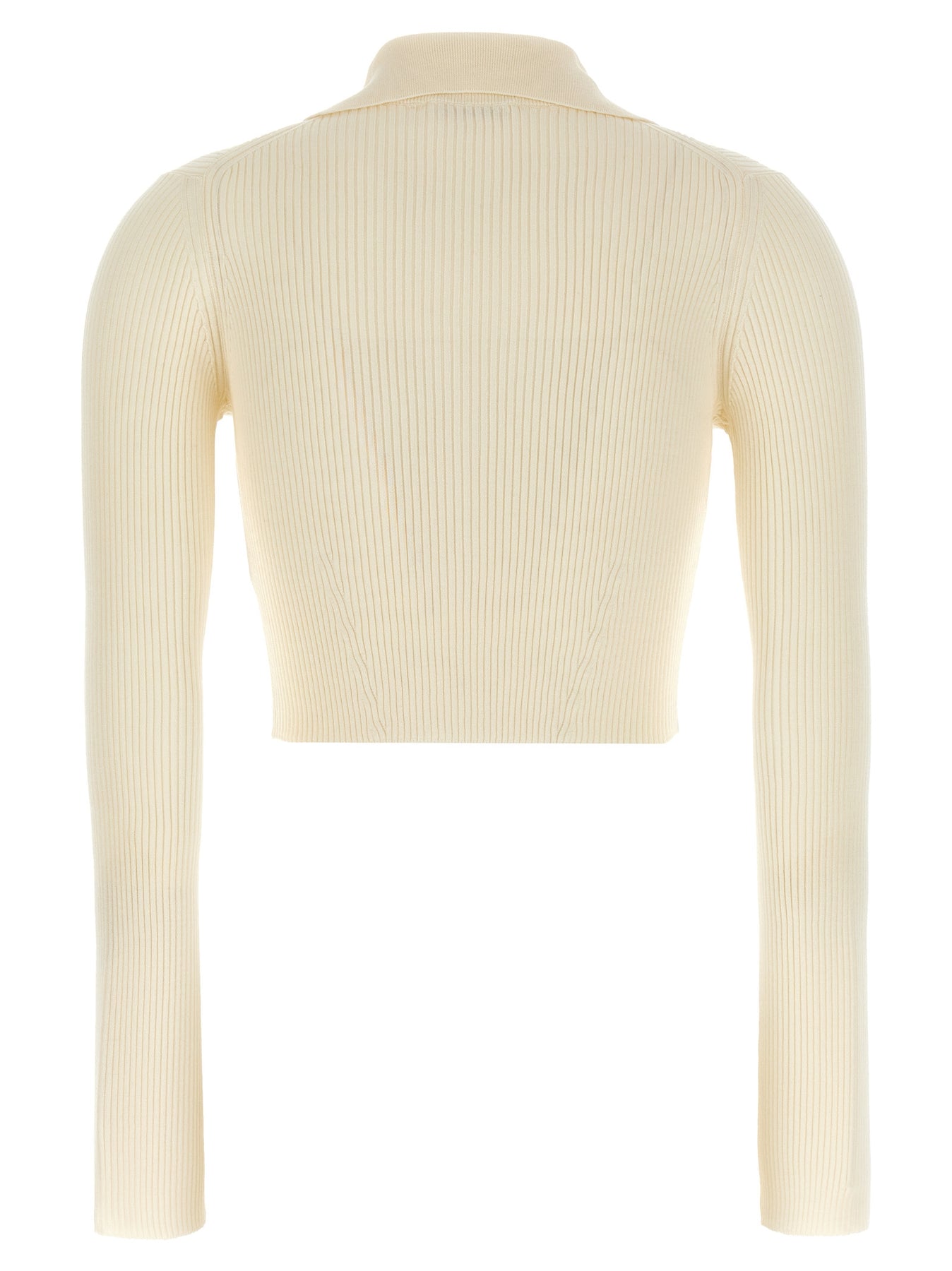 Ribbed stretch wool and viscose blend cardigan, crop model, collar, button closure, long sleeves.