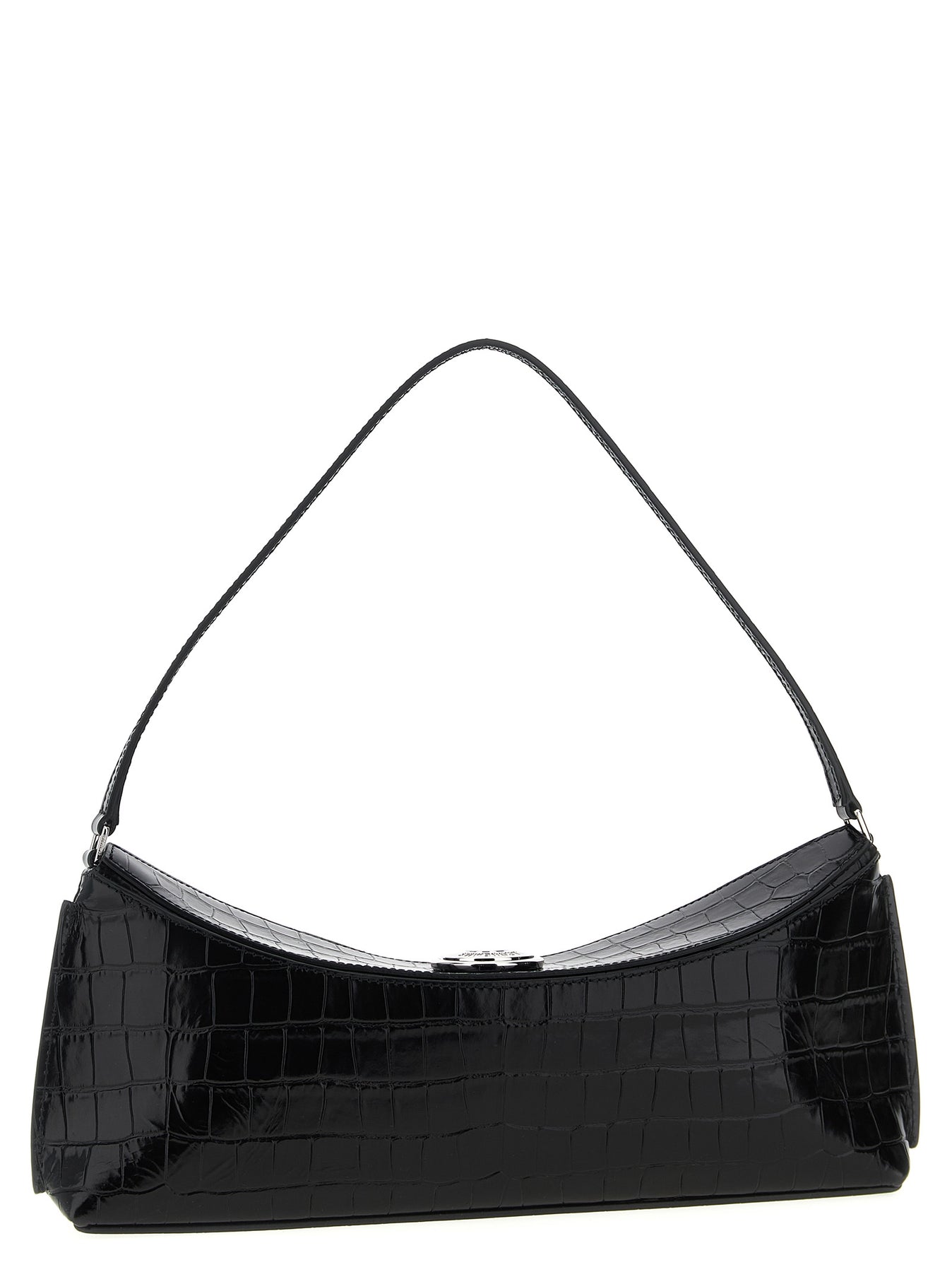 'La Pochette Ovalo' shoulder bag in crocodile-effect print leather, folded magnetic flap closure with engraved metal button detail on the top, fixed handle, cotton lining. Each leather we use is unique and has been carefully selected by our teams.