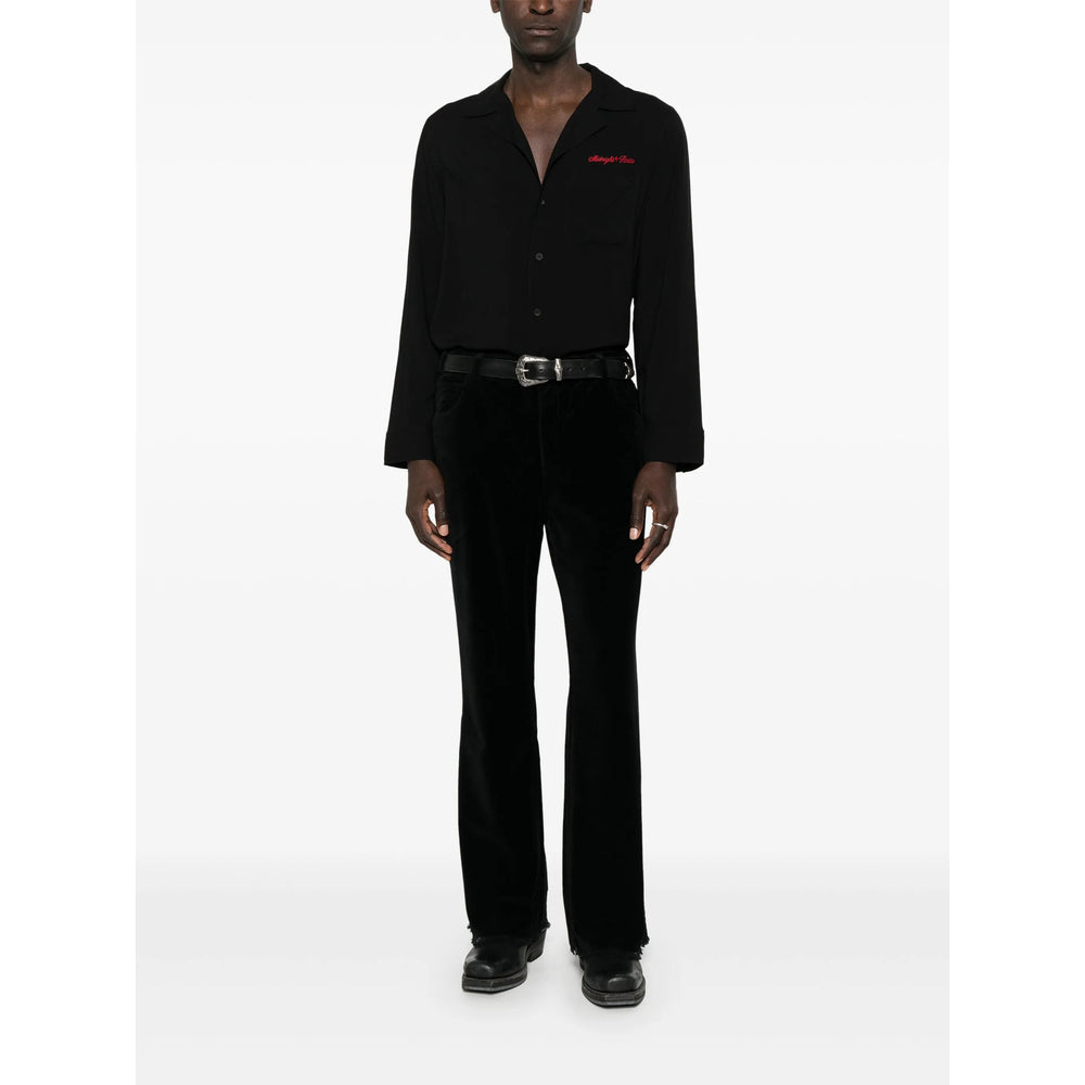 black concealed fly and button fastening belt loops classic five pockets bootcut