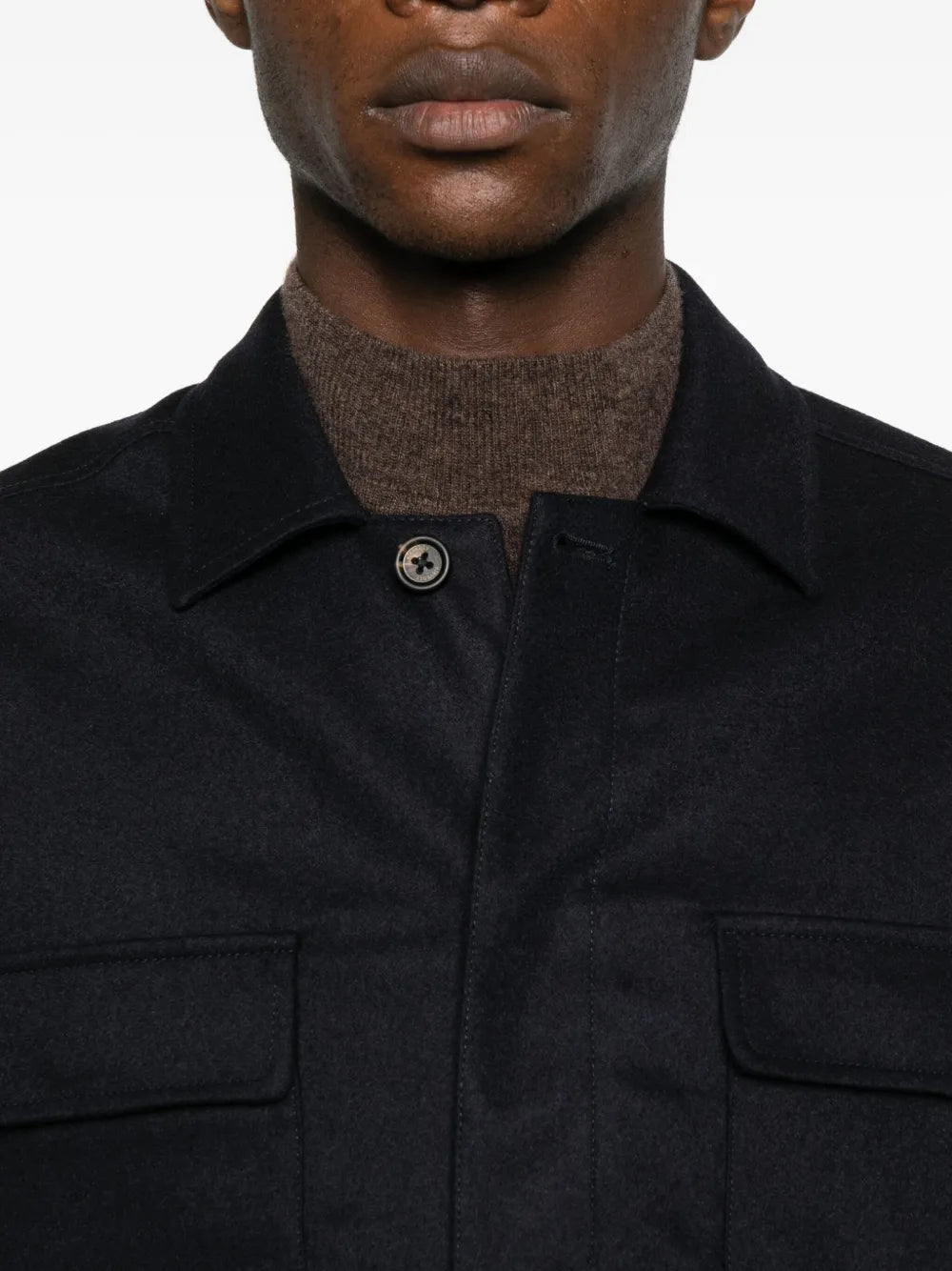 Shirt jacket with pocket Origin: Italy Features Navy blue Chest pockets Button closure Long sleeves Buttoned hems Straight hem Composition 100% viscose Washing instructions Read the manufacturer`s instructions ID L70GIAJ17BTCRN