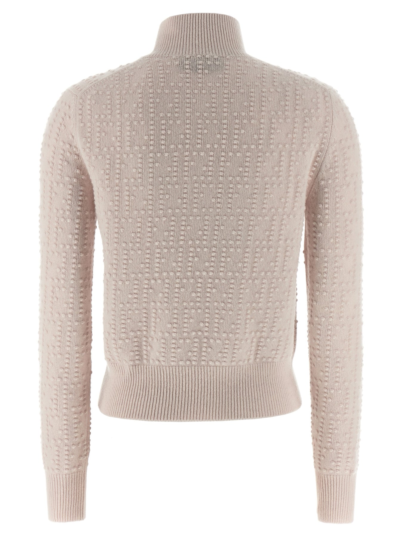 'Pon Pon' wool and cashmere blend sweater, high neck, all-over 'FF' workmanship, long cuffed sleeves.