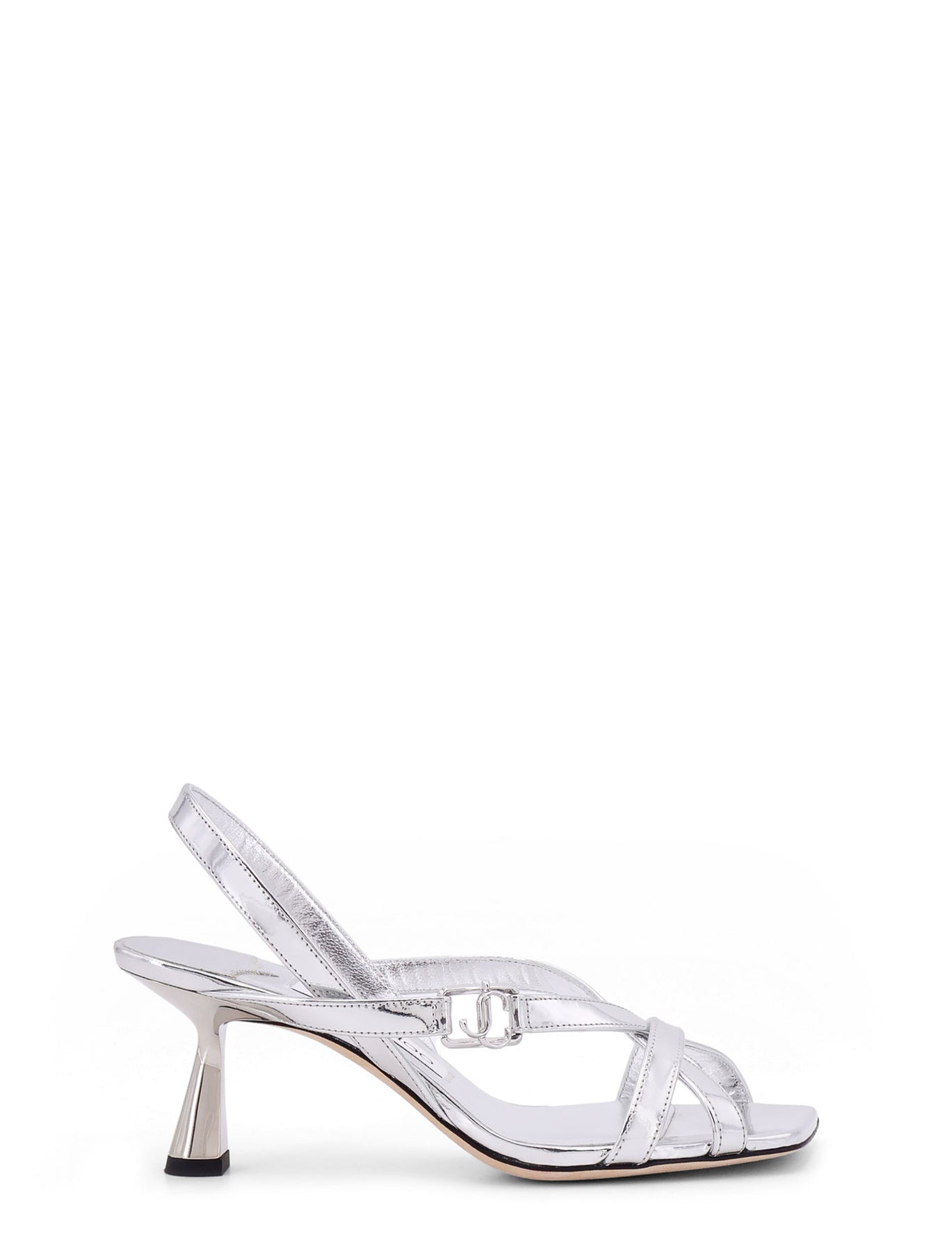 SKU: JESSICA65QUI_SILVER - Crossed bands with monogram detail squared toe covered heel made in italy suede leather leather