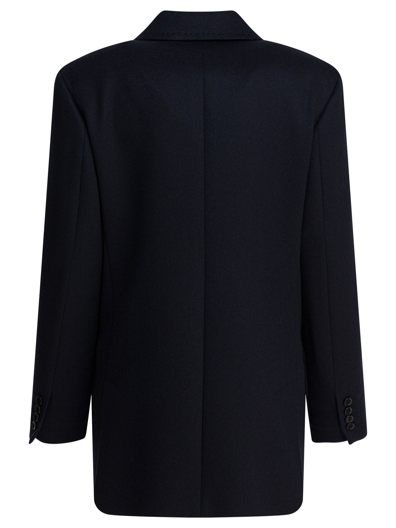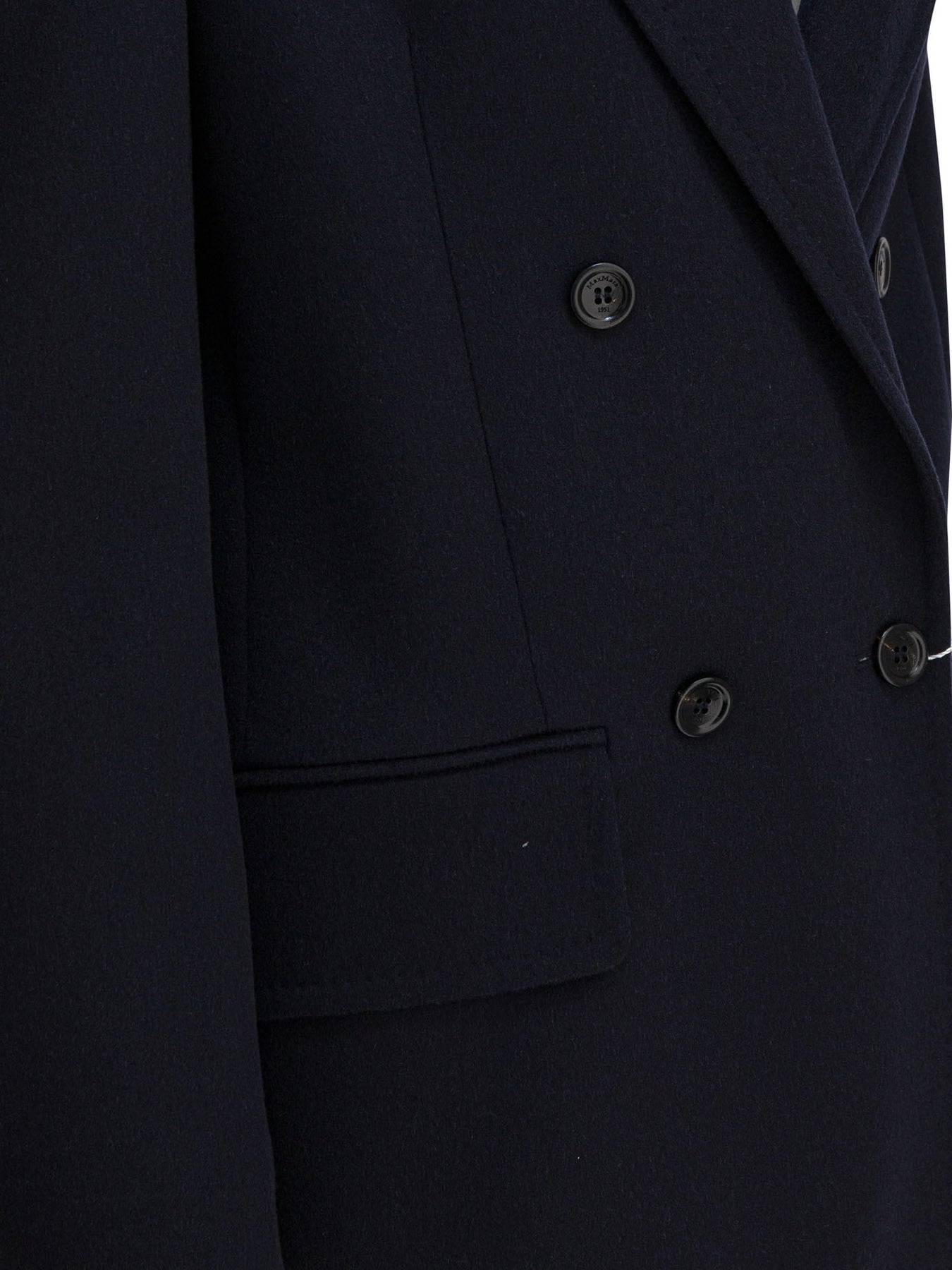 Max Mara camel "Olimpia" blazer features a double-breasted construction with an exposed four-button front closure. The garment is made of light camel baby drap with zibellated trim and features a straight line with slightly wide shoulders. The construction incorporates an inner lining, peaked lapels, round sleeves with buttoned bottoms, breast pocket and patch flap pockets. The back shows double slits. || - Solid color - Lightweight camel baby sable drap - Double-breasted construction - Peaked lapels - Four exposed button closure - Double back slit - Integrated lining - Breast pocket - Patch flap pockets on front - Round sleeves with buttons at the bottom - Regular fit