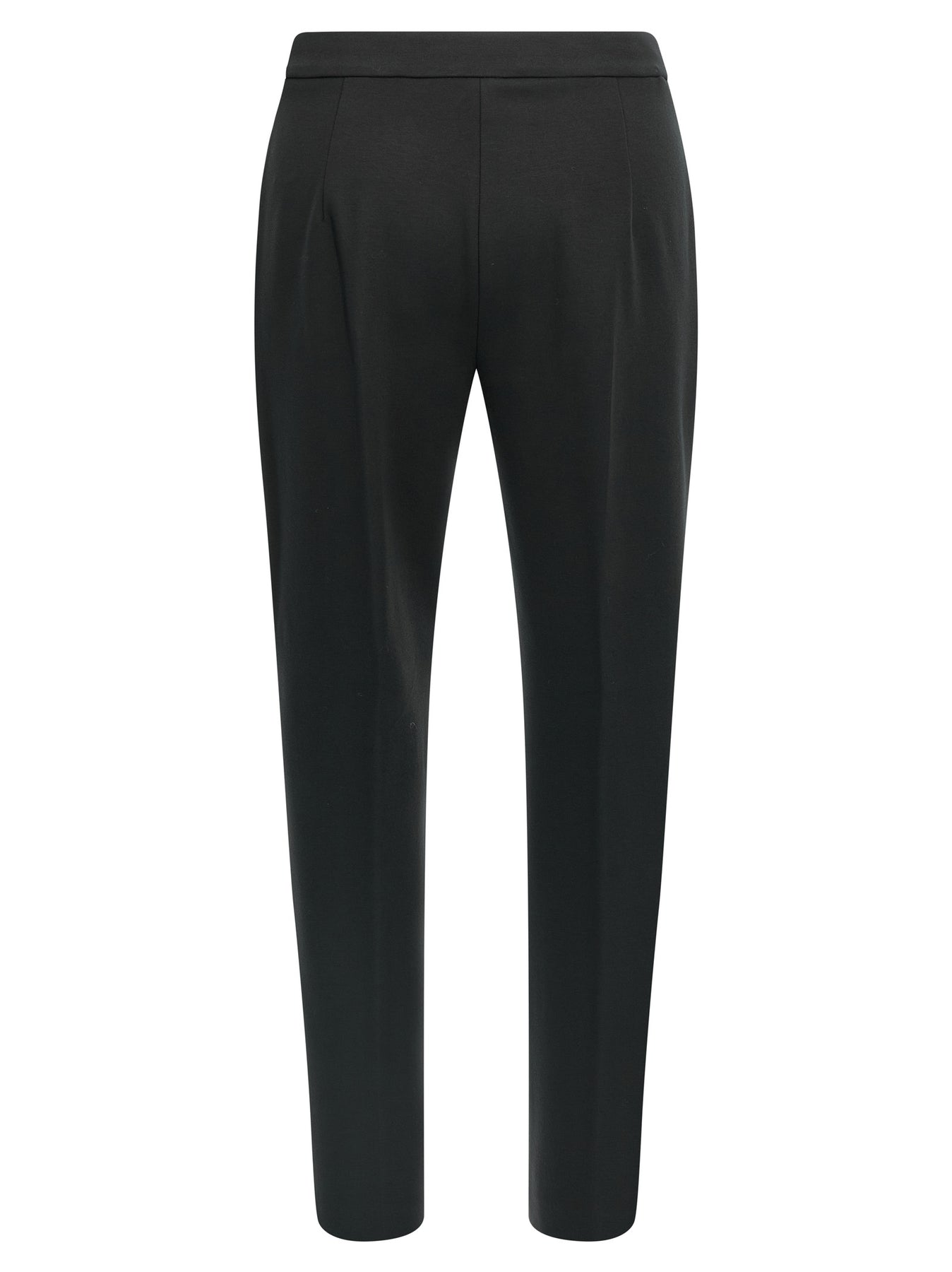 'Pegno' viscose jersey pants, cropped model, medium waist, straight leg with front stretched pleat, zip and hook closure, pockets,