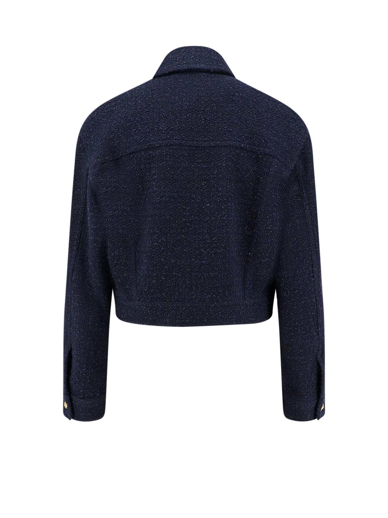 Closure with gold metal buttons Flap pockets with button Two side welt pockets Long sleeves with buttoned cuffs Made in Italy 48% polyester, 31% cotton, 13% acrylic, 4% metallic, 4% wool SKU: 105819A2VJG82
