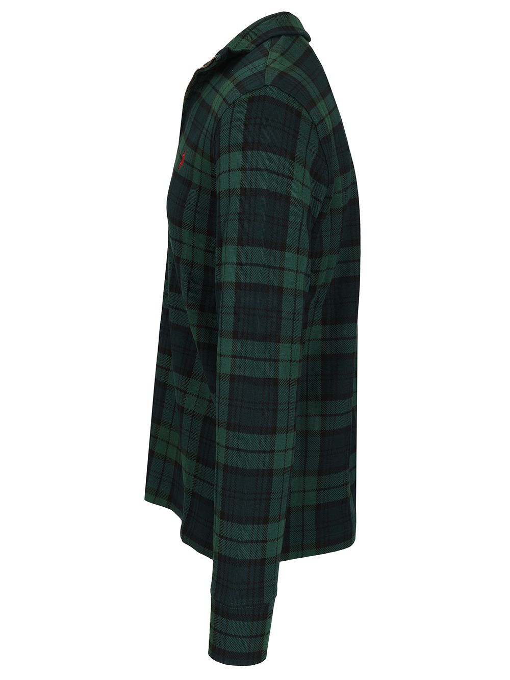 Black Watch cotton polo shirt with long sleeves, zip and embroidered pony on the chest