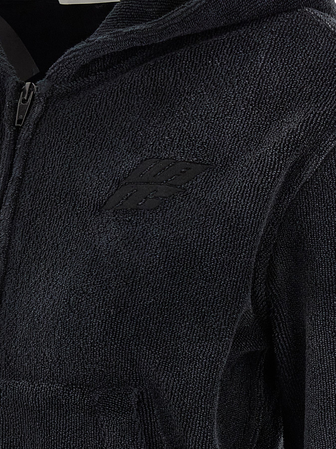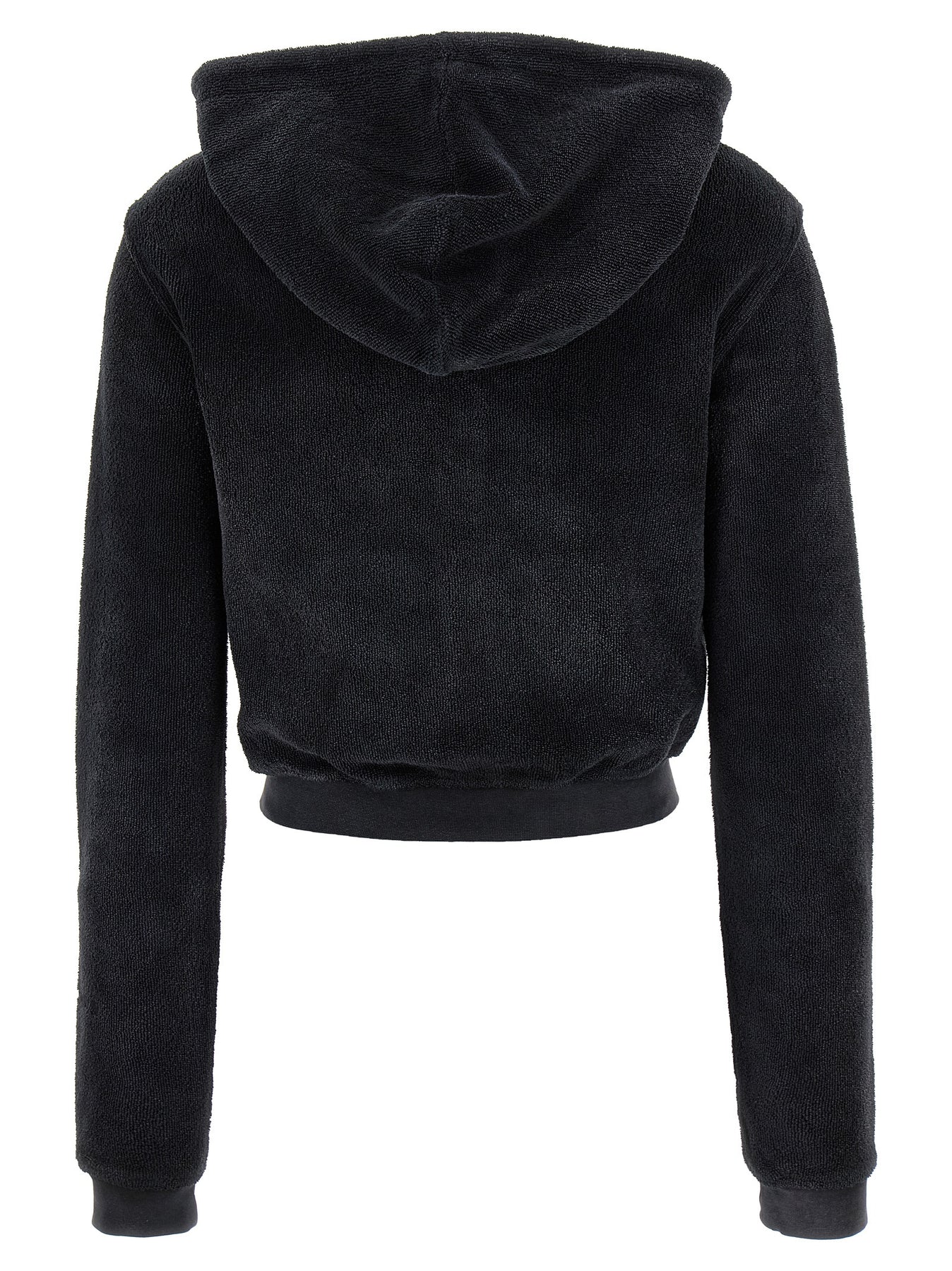 Terry hoodie with tone-on-tone logo embroidery and front zip closure, crop style, pockets, long sleeves with cuffs and dropped shoulders.