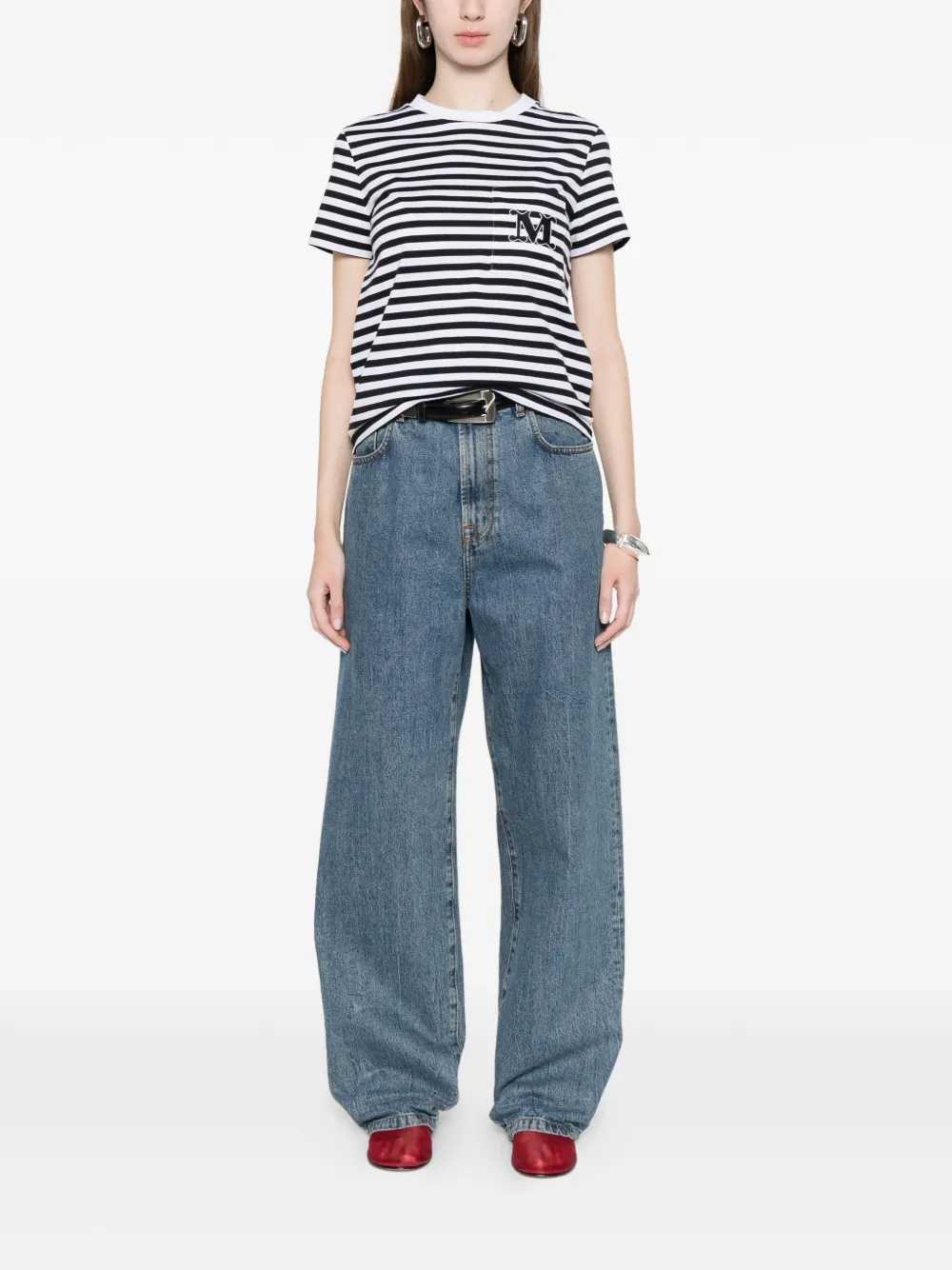 Striped T-shirt with applique Features White Striped pattern Patch pocket Embroidered detail Short sleeves Crew neck Composition 100% cotton Washing instructions Read the manufacturer`s instructions ID 2611941052