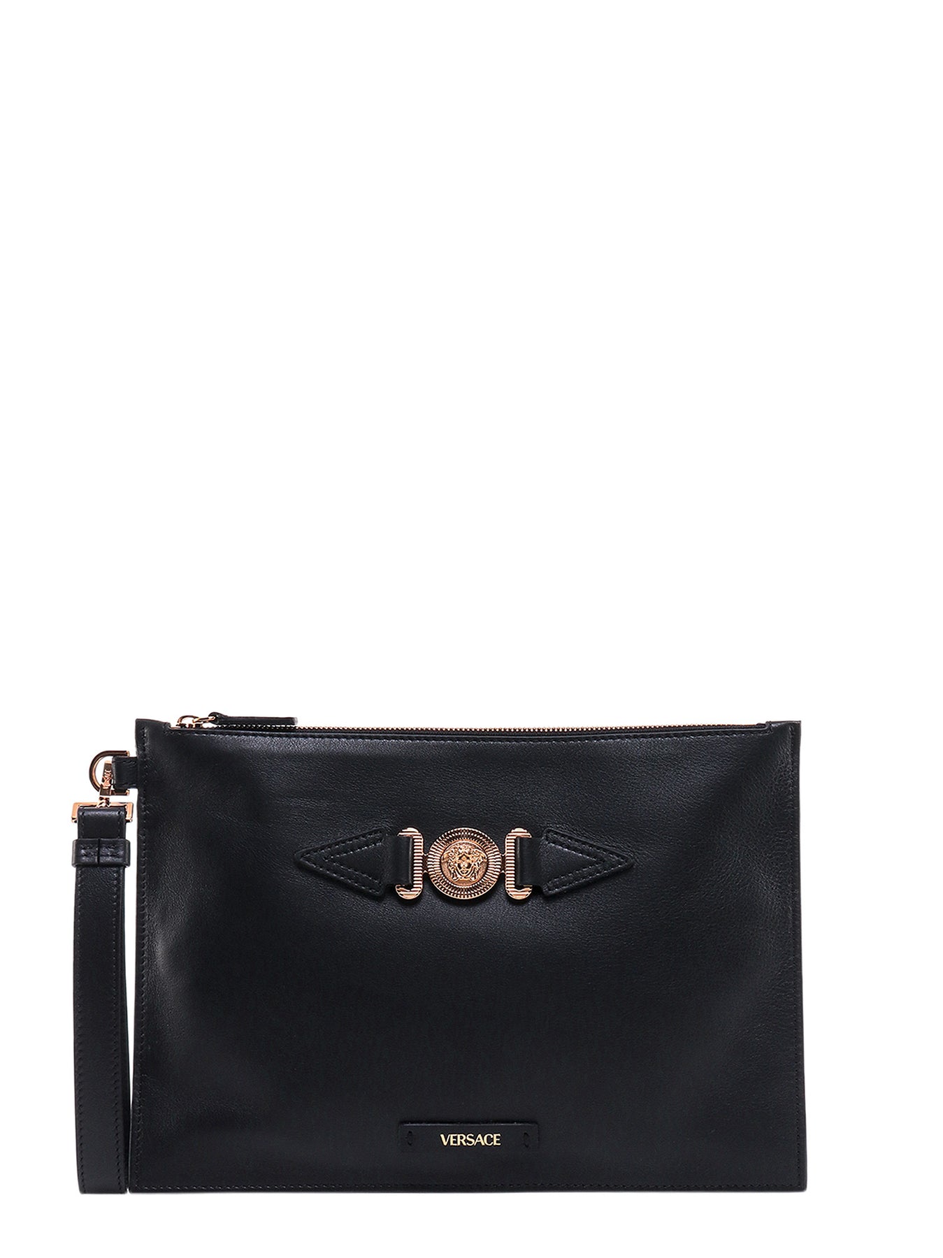 Leather Clutch With Iconic Embossed Medusa