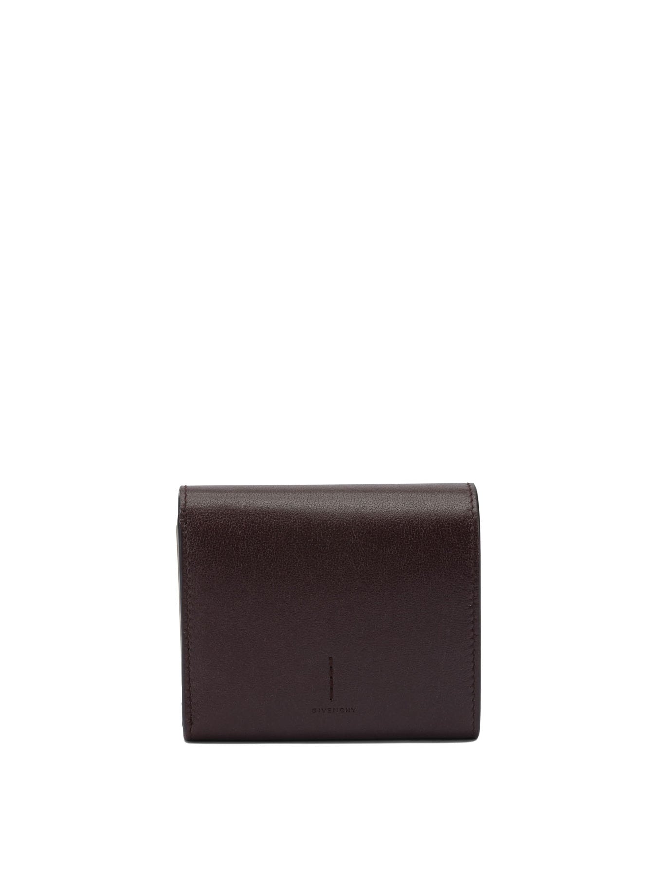 Givenchy's "Day" wallet, constructed of grained calfskin leather, features a compact silhouette and three-door structure that facilitates internal organization. The item incorporates an interior leather lining and uses a snap-button closure to ensure the security of the contents. The interior layout offers numerous compartments intended for cards and bills, allowing for functional division of everyday items. || - Grained calfskin leather - Three-door structure - Interior leather lining - Snap button closure - Multiple card and bill compartments - Engraved Givenchy logo