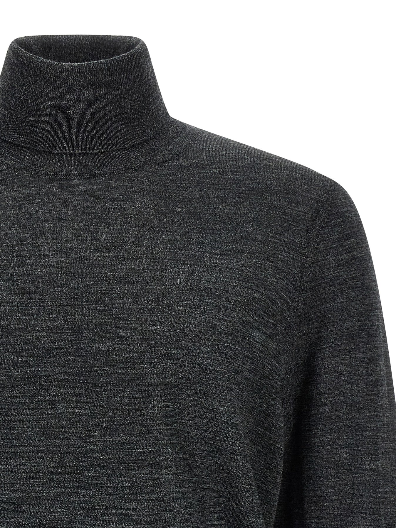 'Musso-P' turtleneck sweater in fine mélange virgin wool with turned-up high neck, long cuffed sleeves.
