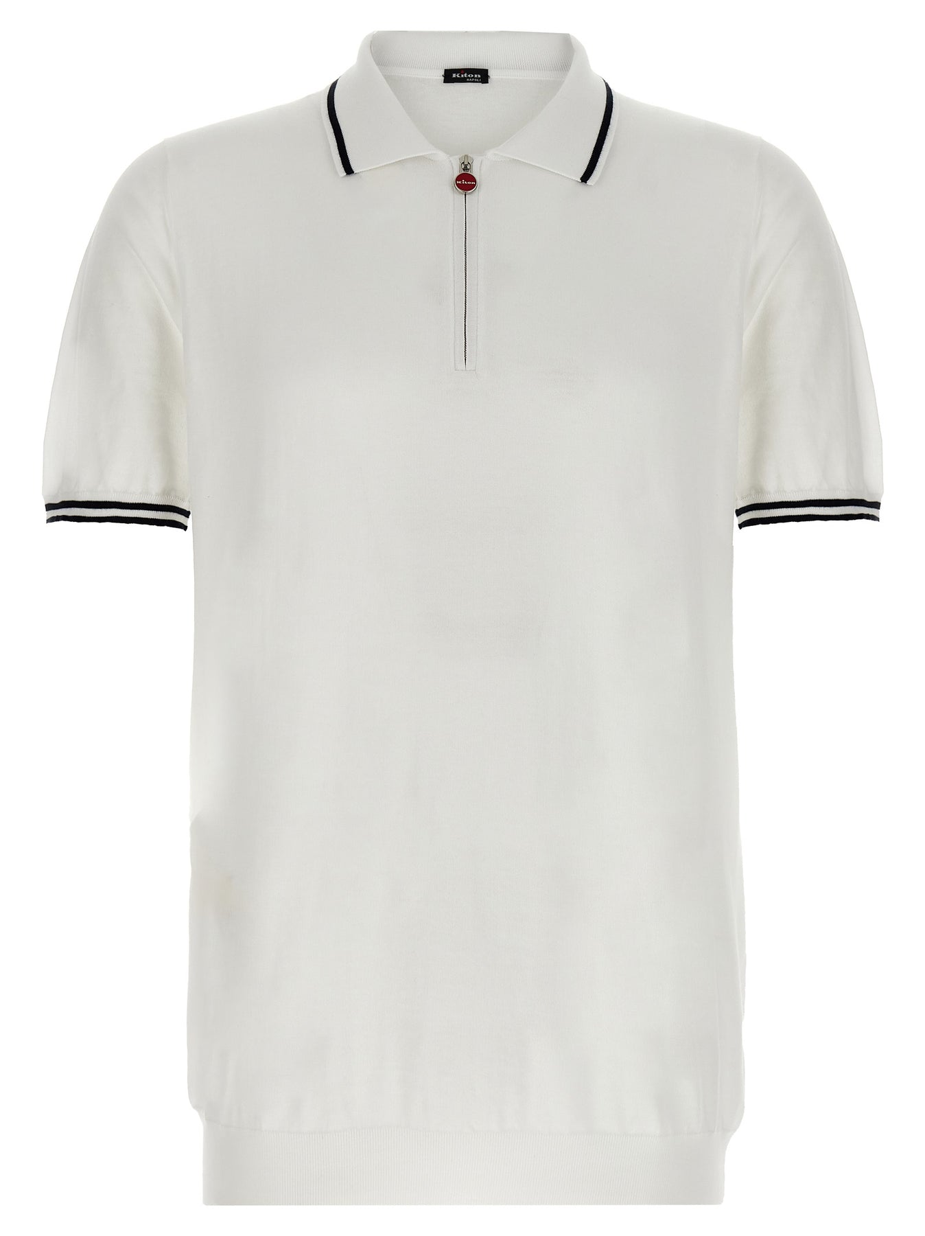'Ciro' cotton polo shirt with contrast details, half zip with logo puller and collar, short sleeves.
