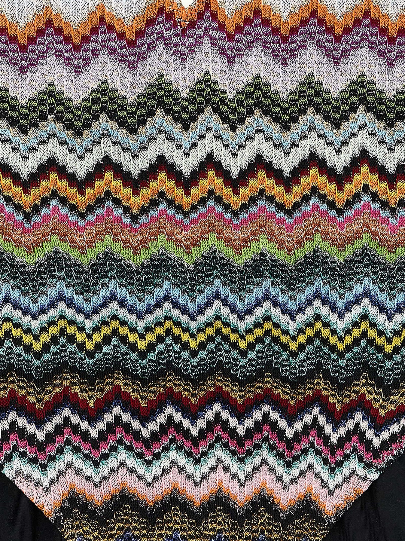 Lamé viscose one-piece swimsuit, zigzag pattern, V-neck, thin crossed shoulder straps at the back.