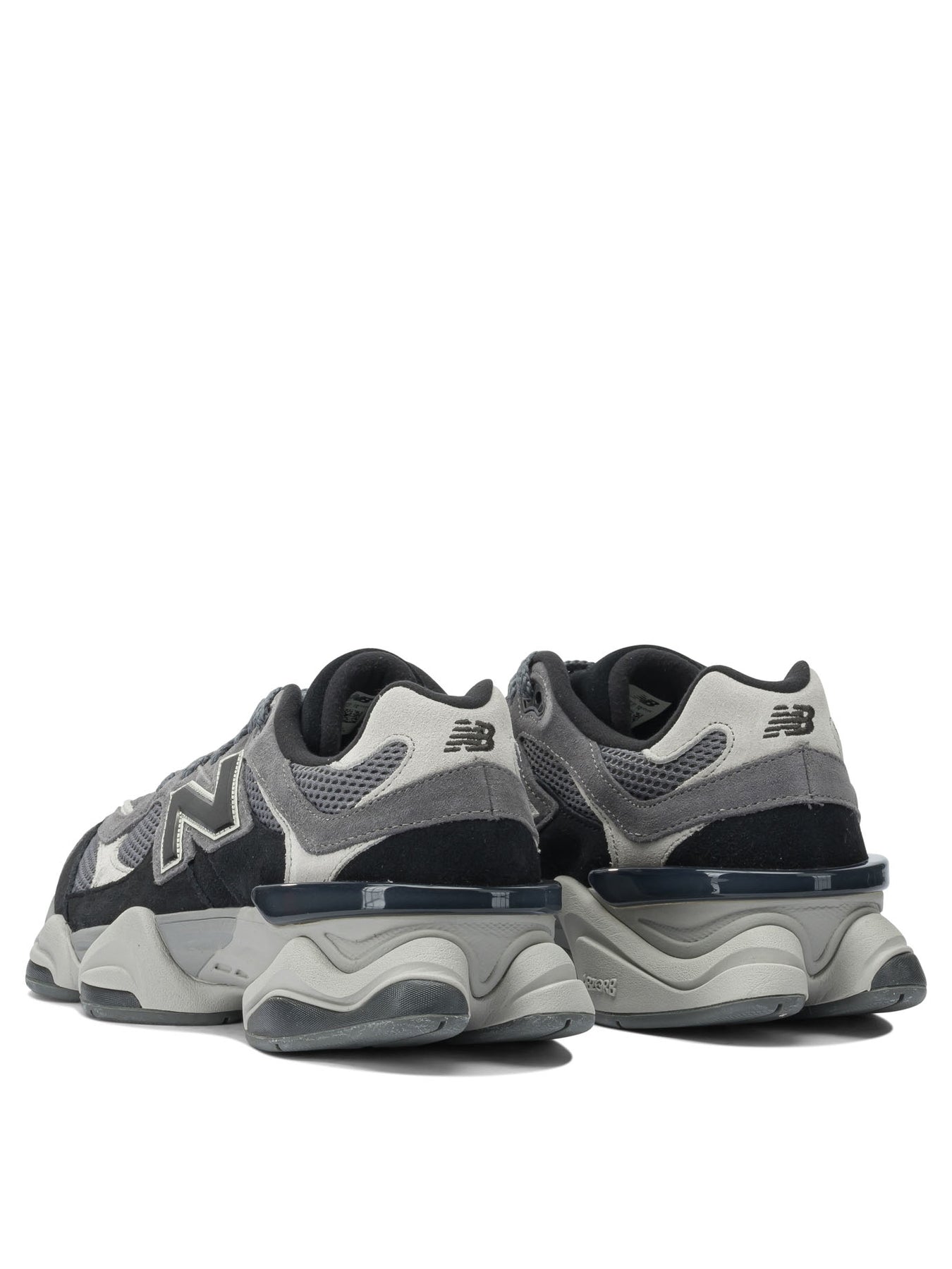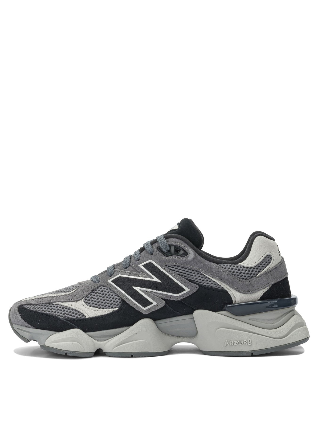 A New Balance "9060" sneaker made with a mesh upper and suede overlays, it features a multilayer construction with overlapping elements. The dual-density sculpted midsole incorporates Abzorb and SBS cushioning platforms, emphasized by wavy lines and scaled proportions. Sway bars are integrated along the upper, while the silhouette expands elements typical of the 99X series into a rugged profile configuration. || - Dual-density midsole with Abzorb cushioning and SBS - Mesh upper with suede overlays - Integrated sway bars throughout the upper - Logo on tongue inspired by 991 laces - Translucent CR device placed on the heel - Sole with diamond pattern inspired by the 860s - Reinforced toe cap and heel - Lace-up closure