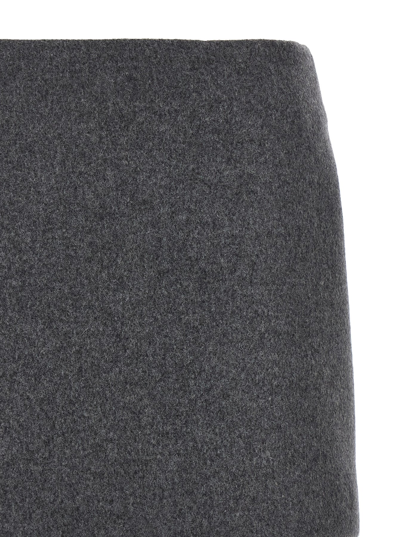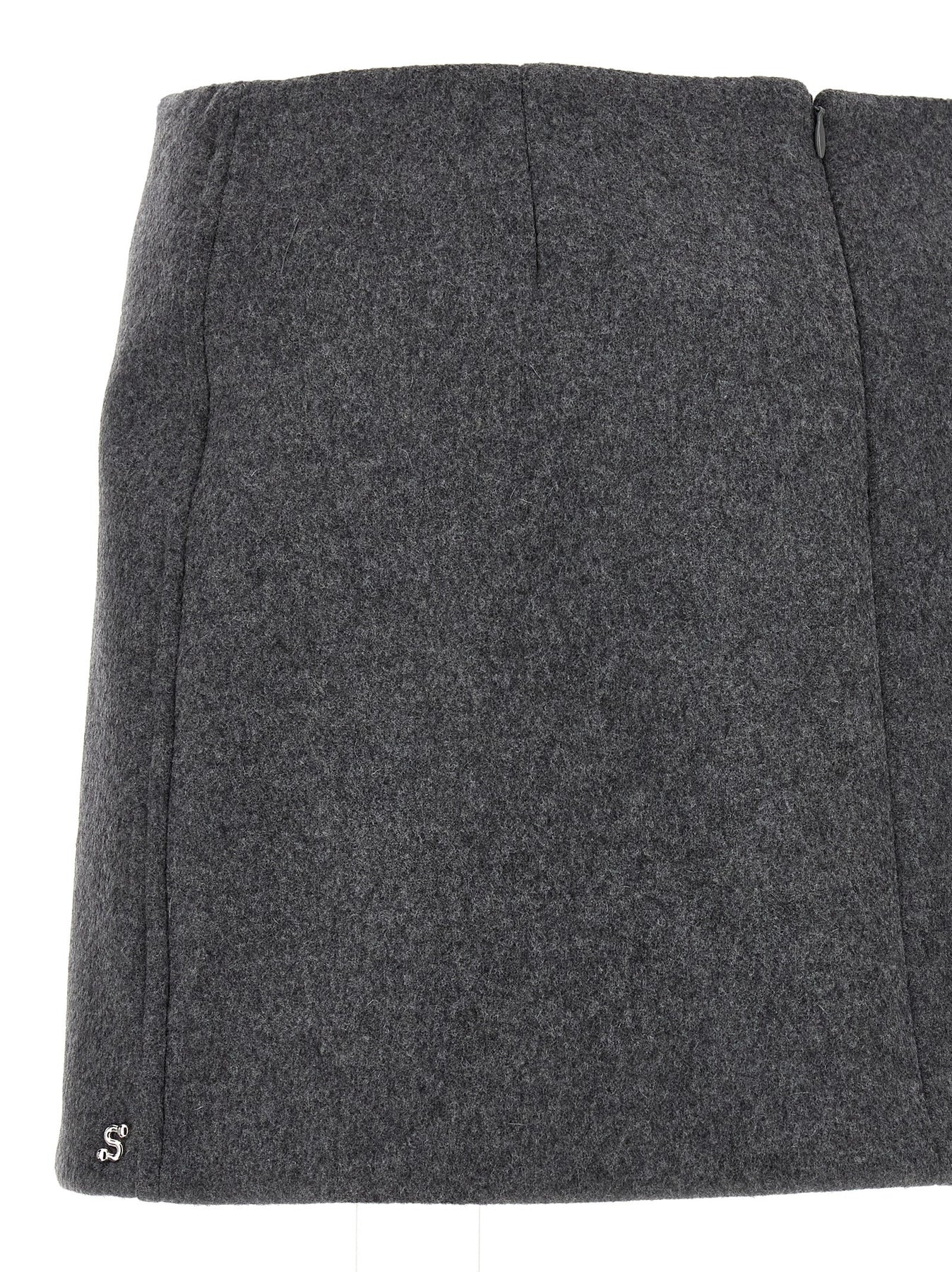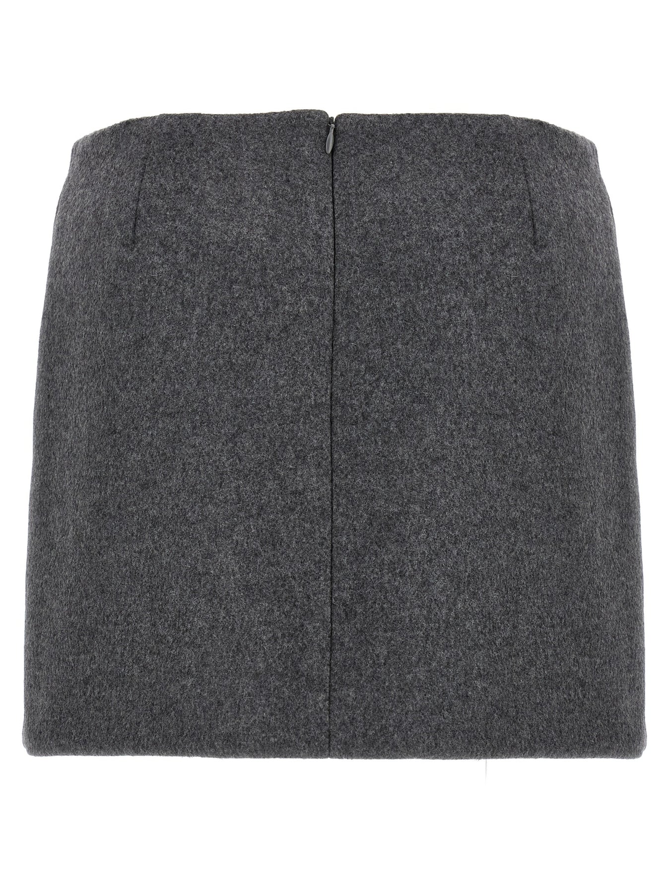 'Poggio' mini skirt in wool mélange, front metal logo, back zip closure, lining.